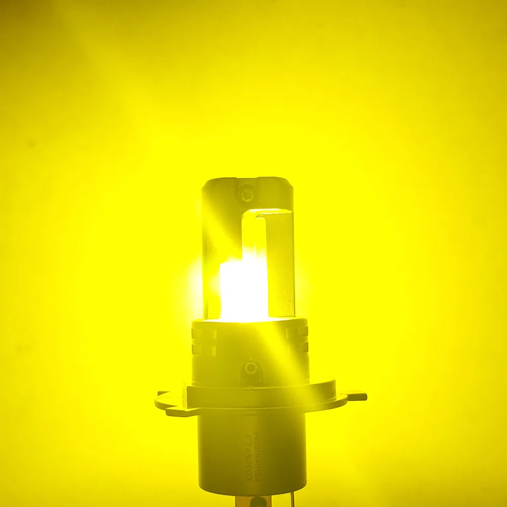 Experience enhanced visibility with these pair of fanless H4 LED CSP headlight bulbs, each rated at 50W and equipped with 32 LED chips producing a warm 3000K golden yellow light for both high and low beams. Designed with durable aluminum bodies for optimal heat dissipation, these bulbs feature an IP67 waterproof rating and a lifespan of over 50,000 hours. Their 12V-18V DC operation and compatibility with H4/9003/HB2 sockets make installation quick and hassle-free, taking only about 10 minutes. An upgraded system delivers 800% brightness, with built-in CANBUS technology to prevent errors and flickering, providing reliable, high-performance lighting for various vehicle models.