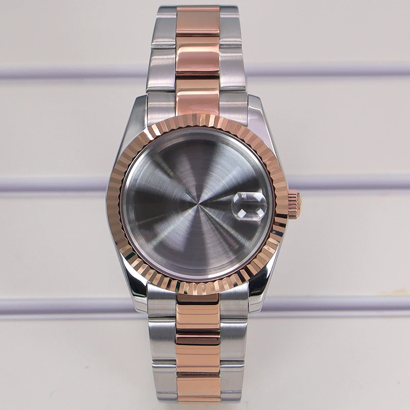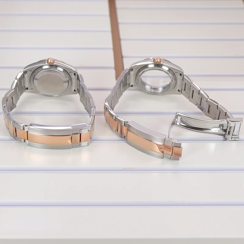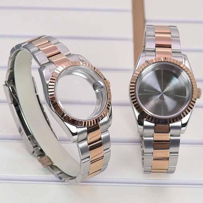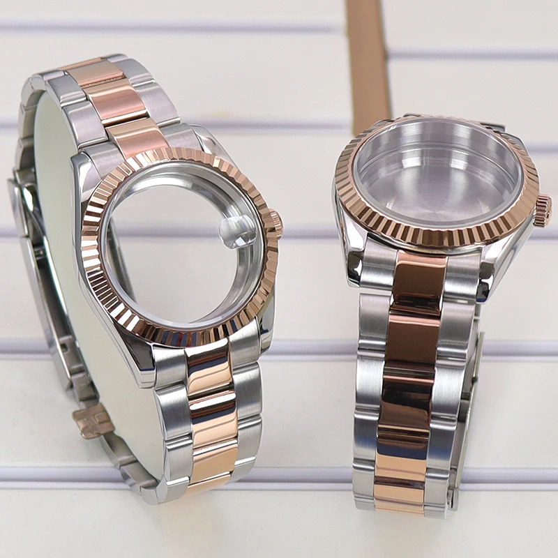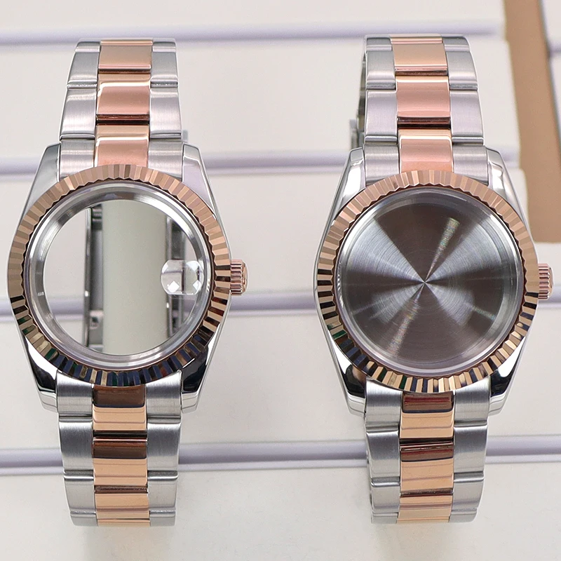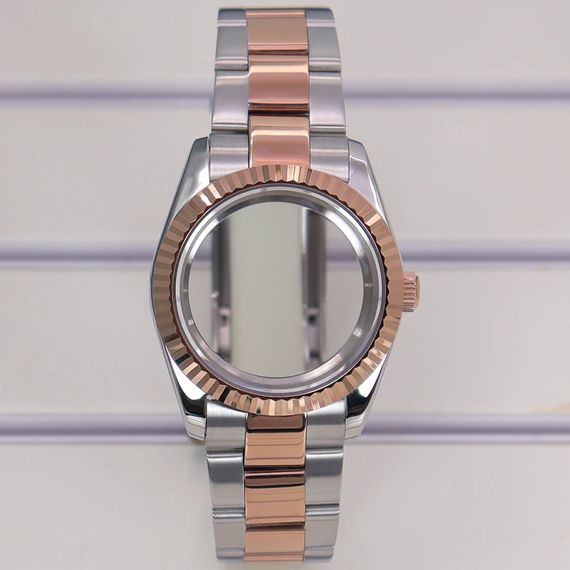 Experience the luxury of this meticulously crafted watch case set that combines timeless elegance and robust durability. Available in 36mm and 39mm diameters, this set features a beautifully polished stainless steel construction with a stylish rose gold-tone bezel and interlinked strap. The watch case boasts a thickness of 11.8mm or 12.2mm, offering a comfortable fit while maintaining a sophisticated profile. The strap’s 20mm width facilitates versatile styling. Equipped with a sapphire crystal glass, this set ensures resistance against scratches and daily wear. Waterproof up to 100 meters (10 ATM), it is built for both elegance and practicality. Perfect for customizing or restoring your favorite timepiece with precise, high-quality components.