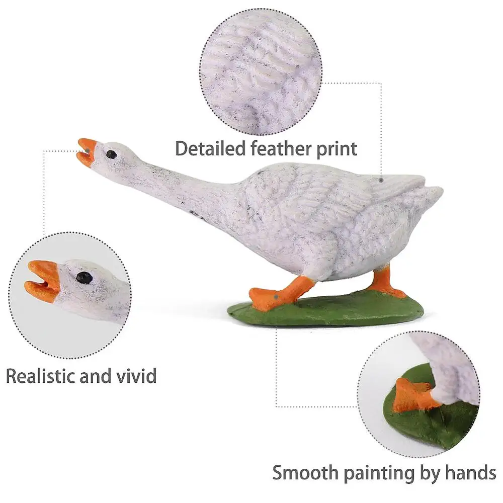 - Detailed coloring and textured surfaces accurately mimic feathers, with white geese featuring orange beaks and webbed feet, while ducks exhibit rich brown hues and markings.