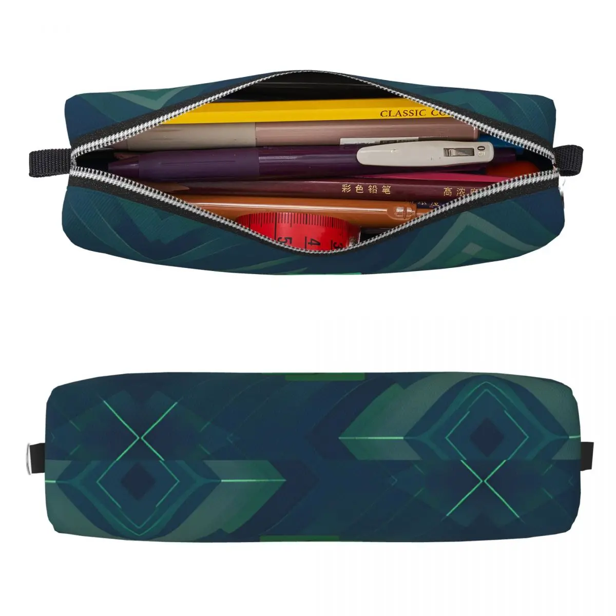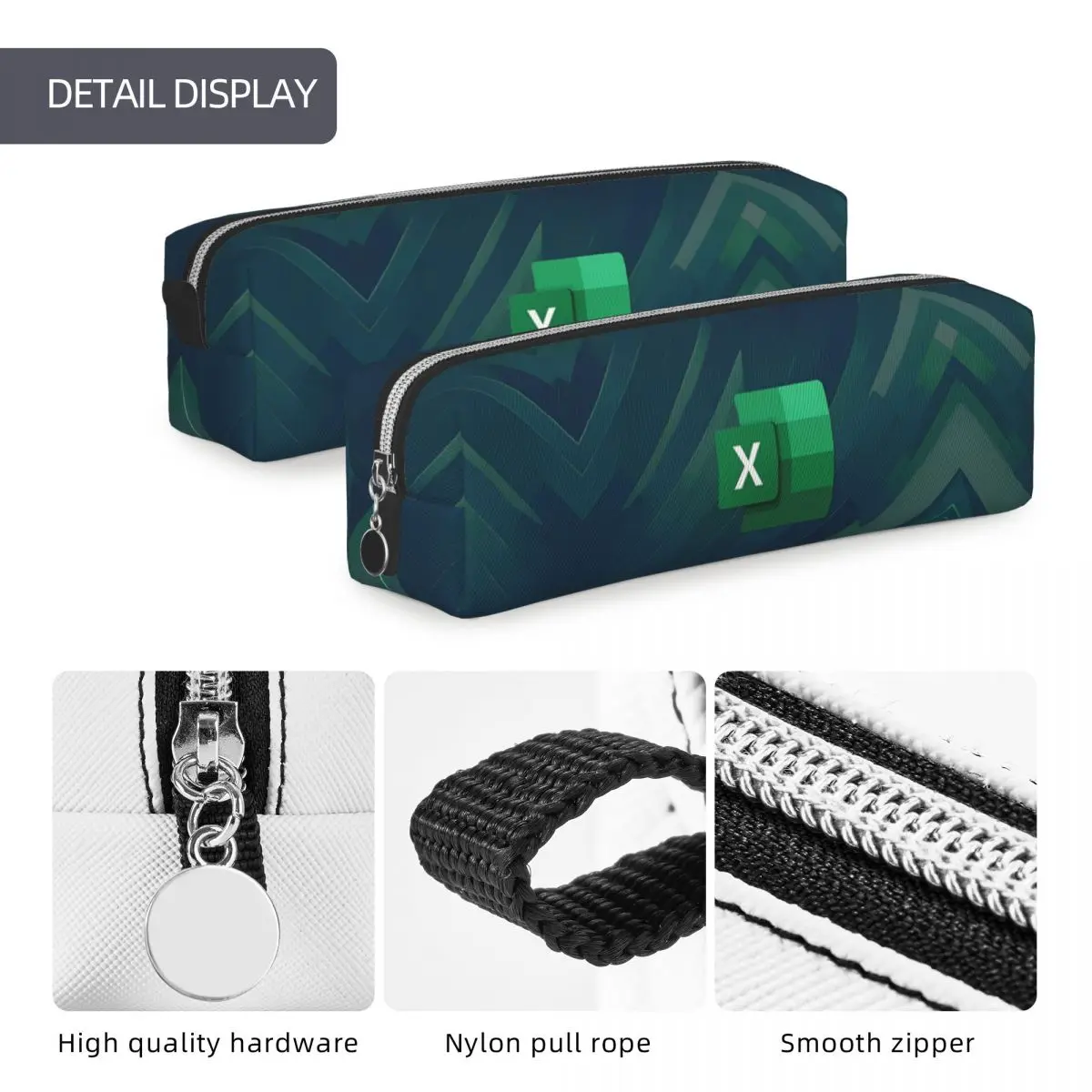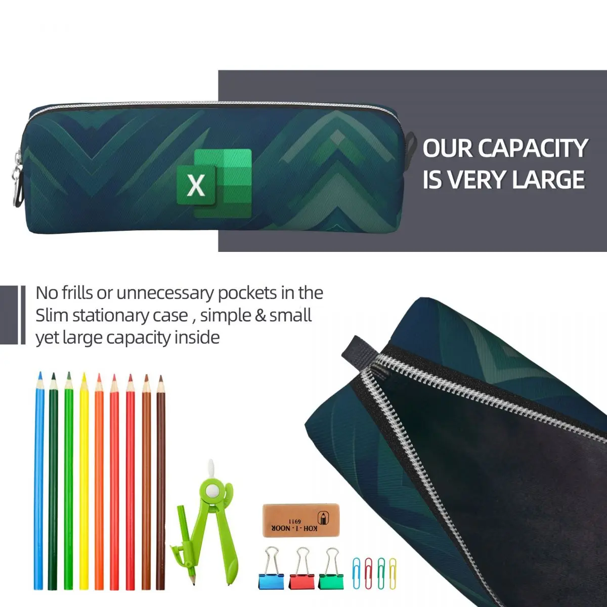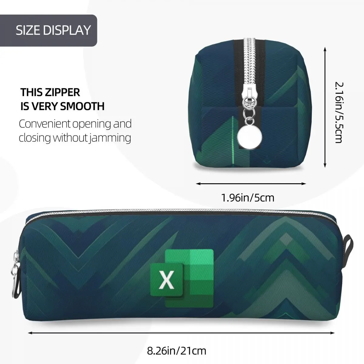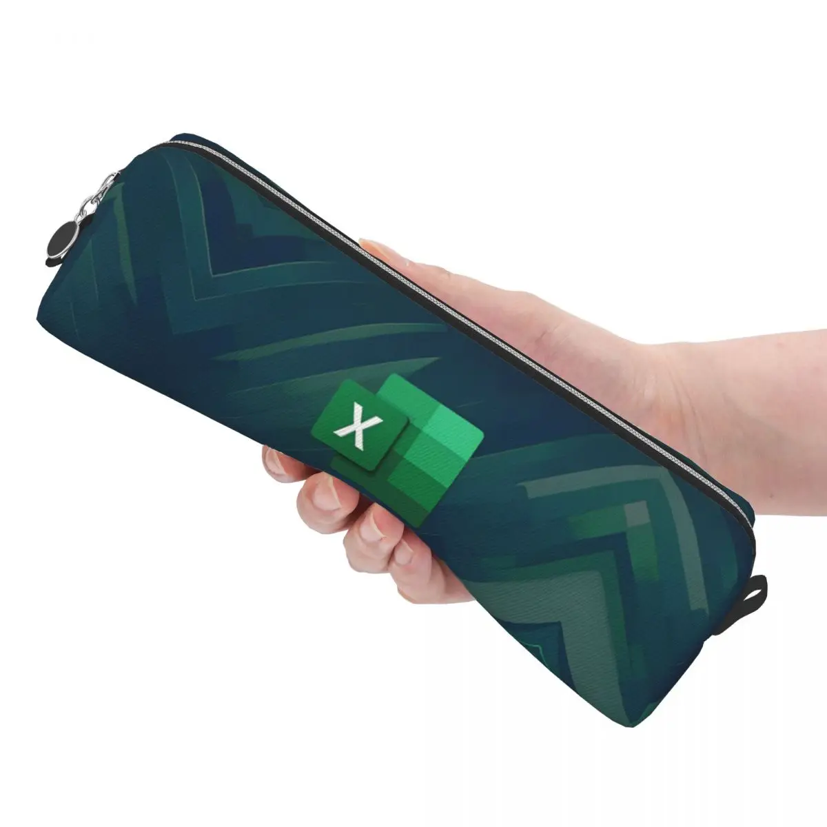 Transform your organization with this Fashion Excel Pencil Case, featuring a sleek, elongated design that merges style with functionality. Crafted from a durable leather-like material, it boasts a modern dark color scheme that transitions through deep blue and green tones. An abstract geometric pattern adds visual intrigue, while the eye-catching vibrant green “X” logo from Microsoft Excel ensures you stand out in any setting. Perfect for both school and office environments, its high-capacity storage can accommodate all your stationery essentials effortlessly, making it the ideal accessory for busy students and professionals.