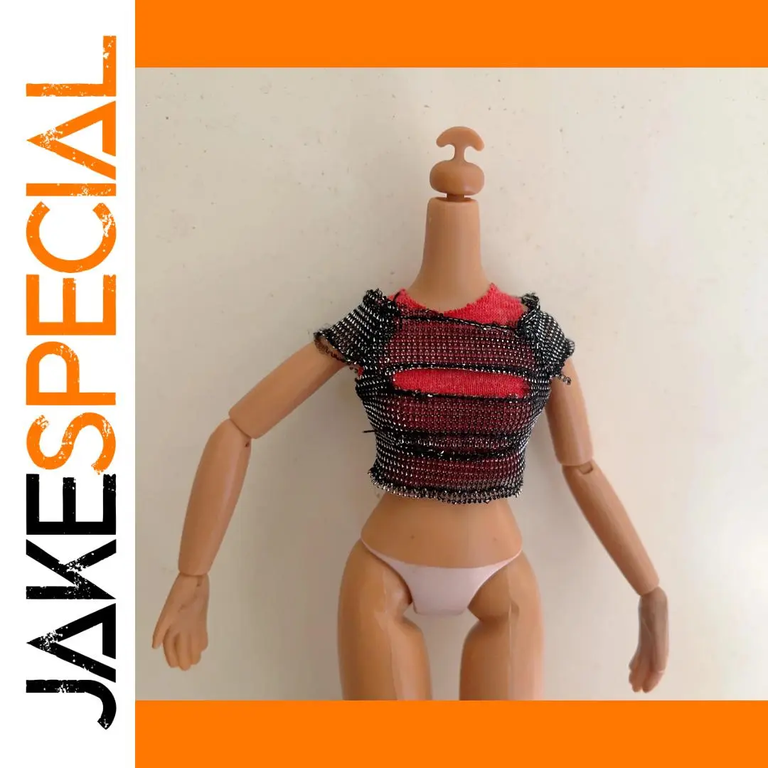 This chic cropped top is designed for 1/6 scale dolls, perfect for enhancing your collection. Featuring a unique combination of black and red elements, it showcases a mesh-like fabric with frayed edges for an on-trend look. With its relaxed fit and short sleeves, this top effortlessly elevates your doll’s fashion game. The eye-catching design not only stands out but also allows for versatile styling options, making it a must-have for fashion-savvy collectors. Please note that the doll shown is for illustrative purposes only and is not included.