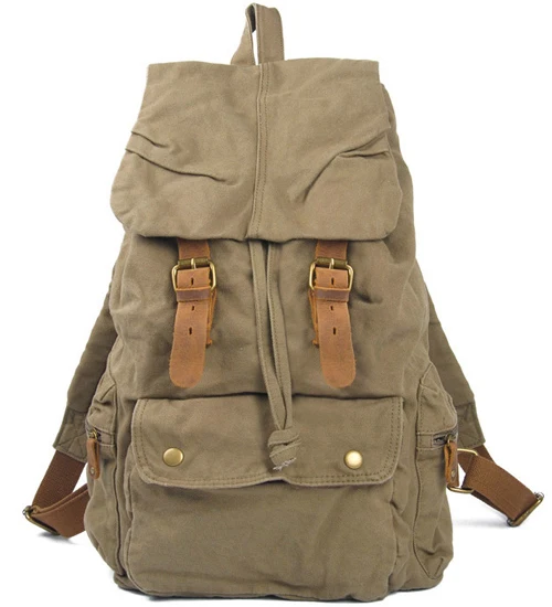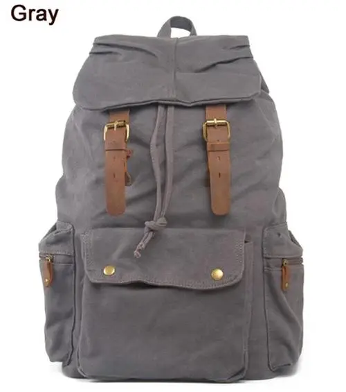 This Fashion Vintage Leather Military Canvas Backpack combines a rugged aesthetic with practical features. Crafted from thick military canvas and crazy horse real leather, it offers a capacity of 20-35 liters. The softback design and arcuate shoulder strap system ensure comfort during wear. It includes a drawstring closure, a front magnet button pocket, and two side zipper pockets for added convenience. Inside, find a wall zipper pocket, a staff pocket, and a dedicated cell phone pocket. Measuring 48 cm in width, 30 cm in height, and 15 cm in thickness, this 1 kg backpack is available in camel, coffee, army green, black, and grey, making it perfect for any casual occasion.