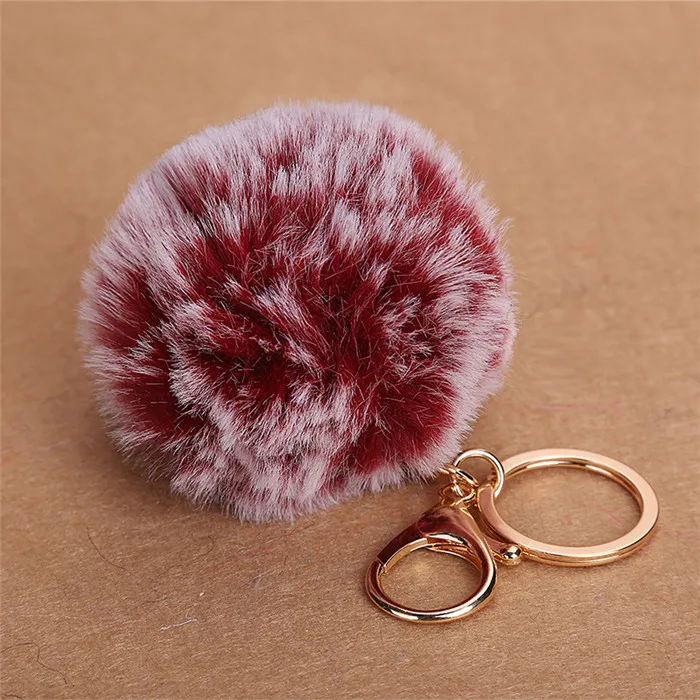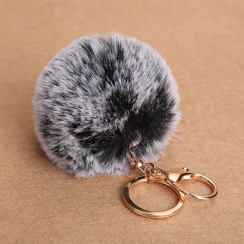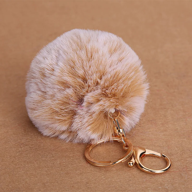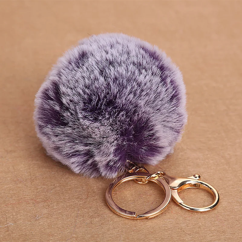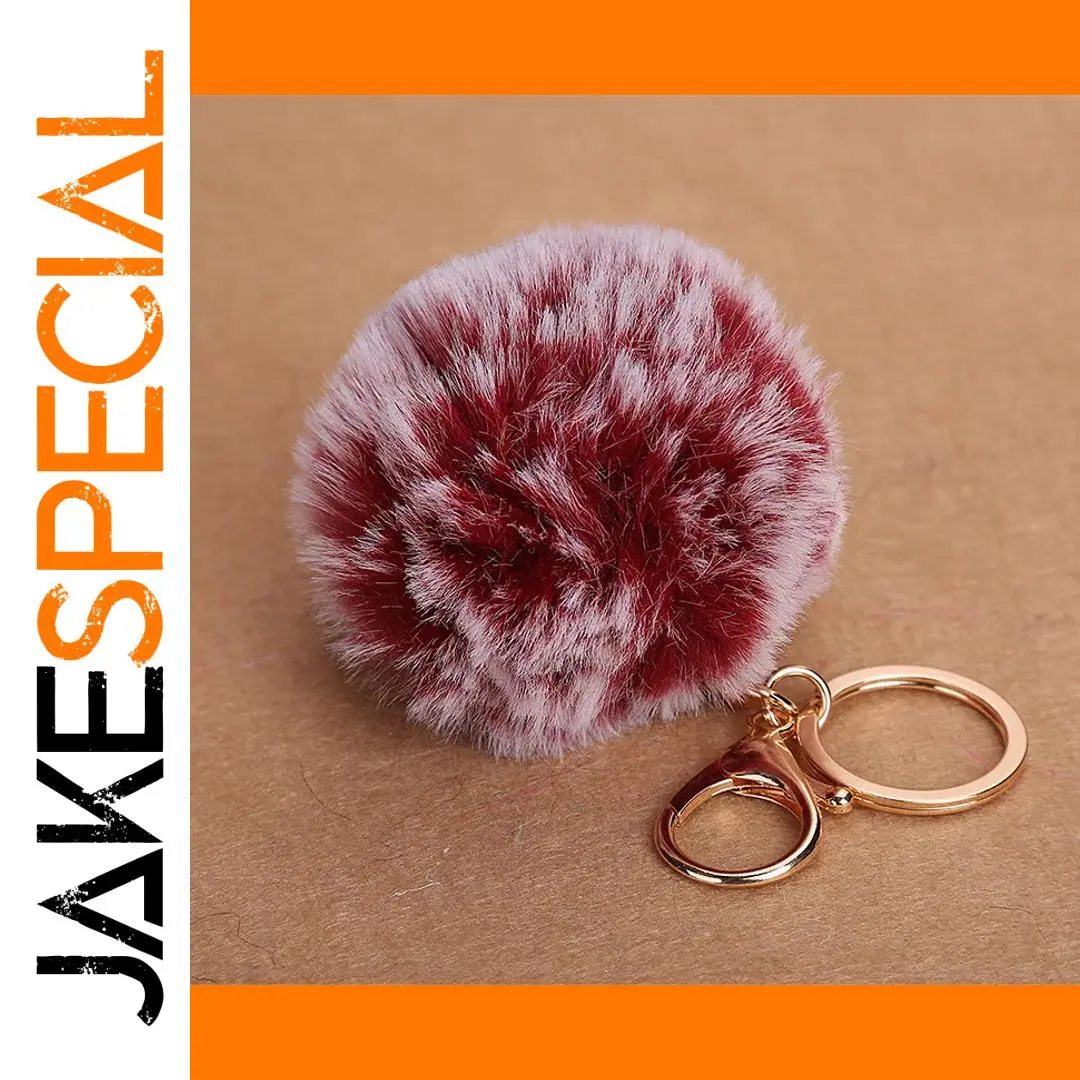 - This unisex keychain showcases an 8cm diameter double-color faux rabbit fur pompom, offering plush softness and vibrant color options for personalized style.