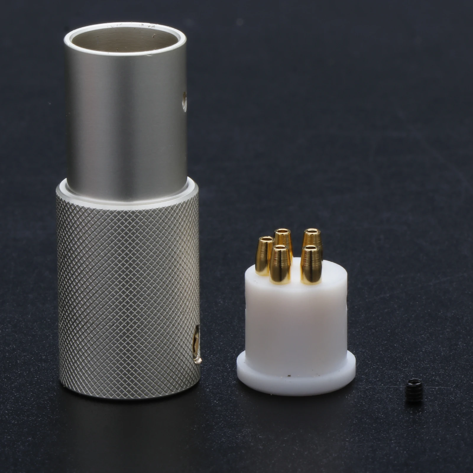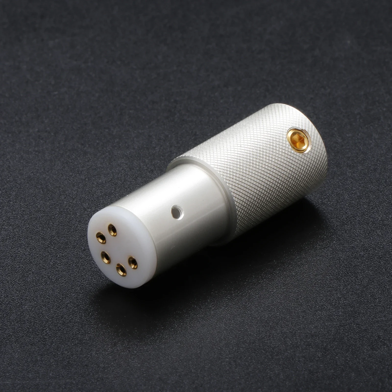Experience premium quality with this high-performance female 5-pin DIN plug, specifically designed for high-fidelity vinyl LP audio systems. Its sleek, cylindrical design and meticulous CNC machining showcase elegance and durability. The silver-colored aluminum alloy housing provides a refined finish, while the textured, knurled lower half ensures a secure grip during installation. Gold-plated brass pins guarantee excellent conductivity and corrosion resistance, enhancing your audio signal clarity. The white PTEF insulator offers reliable electrical insulation, ensuring noise-free audio output. This connector’s compact size—37mm in length and 14mm in diameter—fits seamlessly into your turntable or vinyl setup, with cable compatibility up to 10mm outer diameter. A perfect combination of style and performance elevates your audio experience to a new level.