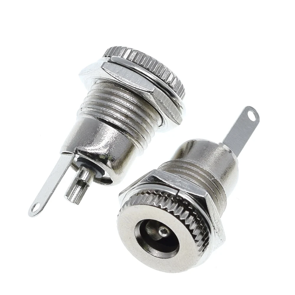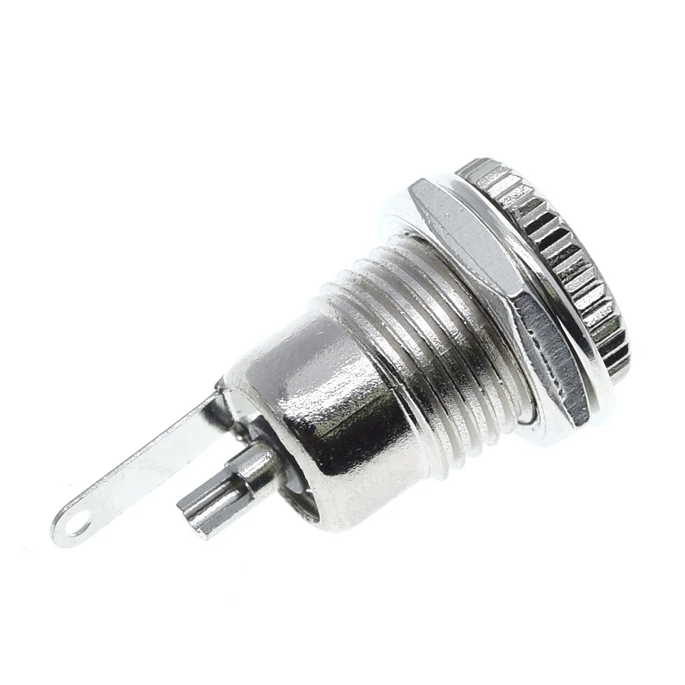 Imagine effortlessly connecting your electronic devices with this precisely engineered female DC power jack. Its polished metal finish and professional design ensure not only durability but also a clean aesthetic suitable for any project. Crafted from copper with a shiny, smooth surface, this connector exudes quality craftsmanship. The cylindrical body features highly accurate threading that ensures a secure fit, while the recessed socket ports provide a streamlined, functional look. The hexagonal lock nut and circular retaining ring give a sleek industrial feel and reinforce stability in your assemblies. Whether for custom DIY electronics or professional builds, this connector guarantees a reliable, high-quality connection every time you need it, enhancing your project’s efficiency and durability.