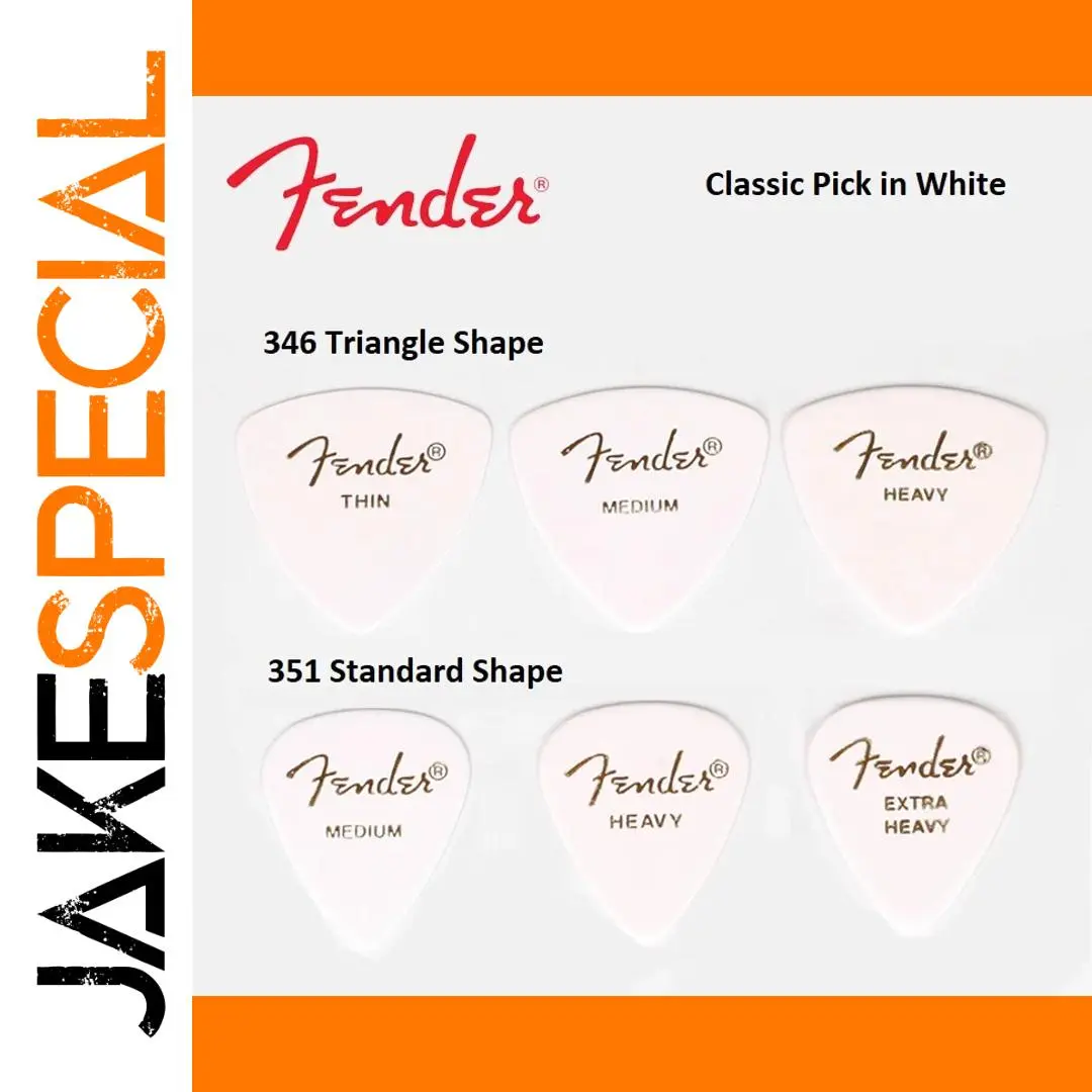 Experience the timeless quality of this Fender 351/346 Shape Class Guitar Pick, designed to elevate your playing experience. Made from high-quality plastic, the pick features a smooth, glossy surface that catches subtle light reflections, highlighting its refined finish. The classic 351 shape boasts a slightly rounded, symmetrical teardrop silhouette that fits comfortably in your hand, providing both precision and flexibility. Its minimalist design is accented with the iconic Fender logo in a light brown or tan hue, set against a crisp white background, evoking vintage charm. Whether you're strumming acoustic or electric guitar, this pick offers the traditional feel and warm, rounded musical tone that Fender is renowned for. Perfect for versatile playing styles, it enhances your performance with every strum.