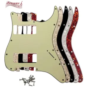 Enhance your Fender Stratocaster with this high-quality, custom-designed pickguard compatible with US models featuring 11 screw holes and accommodating 2 P90 humbuckers. Made from durable PVC and composite materials, it offers vibrant color options including Pearl, Tortoise, Shell, and solid finishes in 3Ply and 4Ply. The pickguard measures 24.6 x 23.7 x 23.2 mm, weighs approximately 200 grams, and features a protective film for shipping. It includes a real aluminum foil shield on the back for superior noise reduction and interference protection. Complete with 11 mounting screws, this brand-new pickguard adds both style and functionality to your guitar.