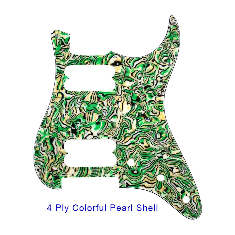 Transform your Fender Stratocaster ST HH guitar with this high-quality, visually striking pickguard. Designed for both aesthetic appeal and optimal performance, it features a highly glossy, marbled pearl-like gold finish at the center that shimmers under stage lights. Surrounding it are vibrant options such as deep red, purple, black, green, as well as sleek chrome and pearl effects, all crafted from durable PVC and composite materials. The pickguard offers anti-scratch protection thanks to a peel-off film, ensuring long-lasting beauty. Its precise dimensions of 285mm x 230mm x 2.5mm make it compatible with US and Mexican Fender Stratocaster models. Easy to install with 11 screw holes, this accessory adds a personalized, premium look to your guitar while protecting it from wear and noise interference.