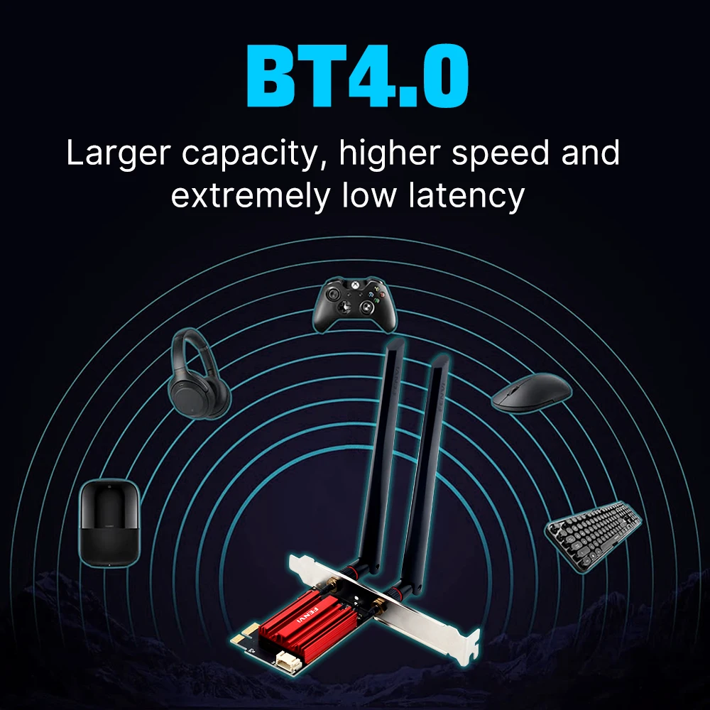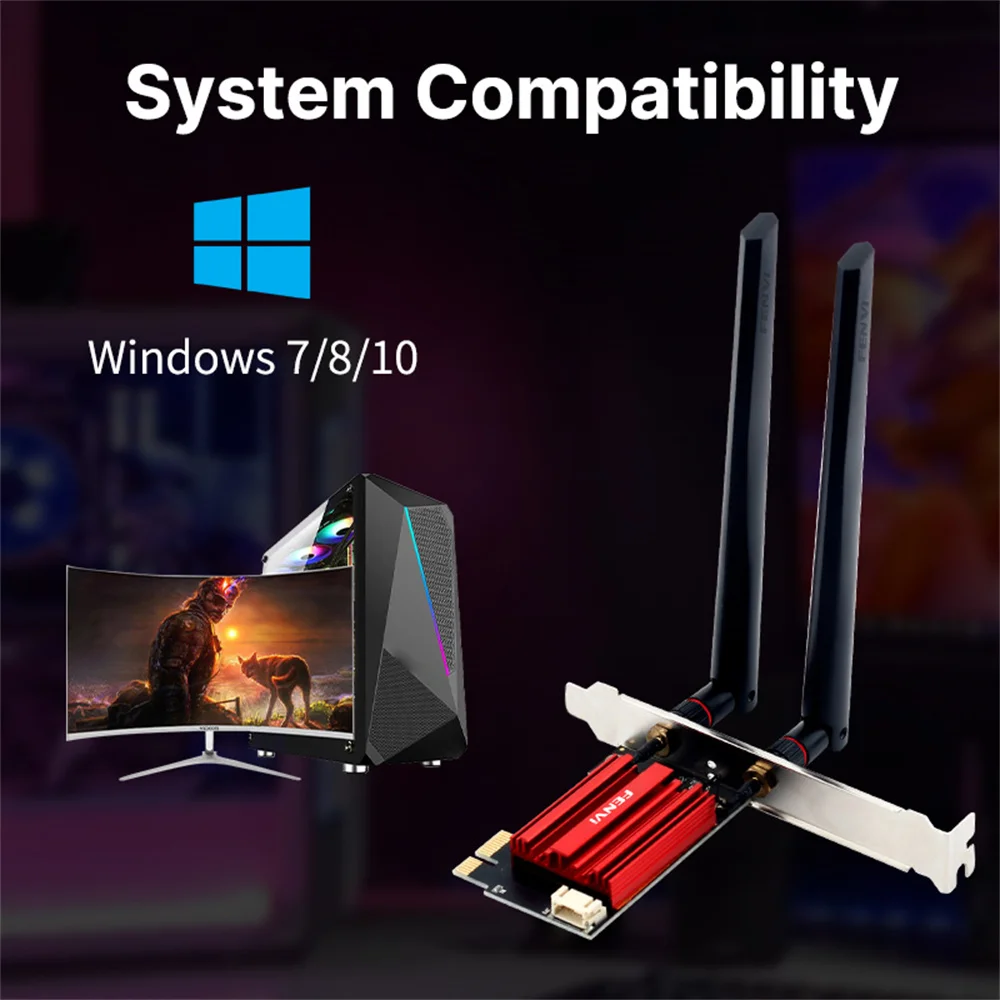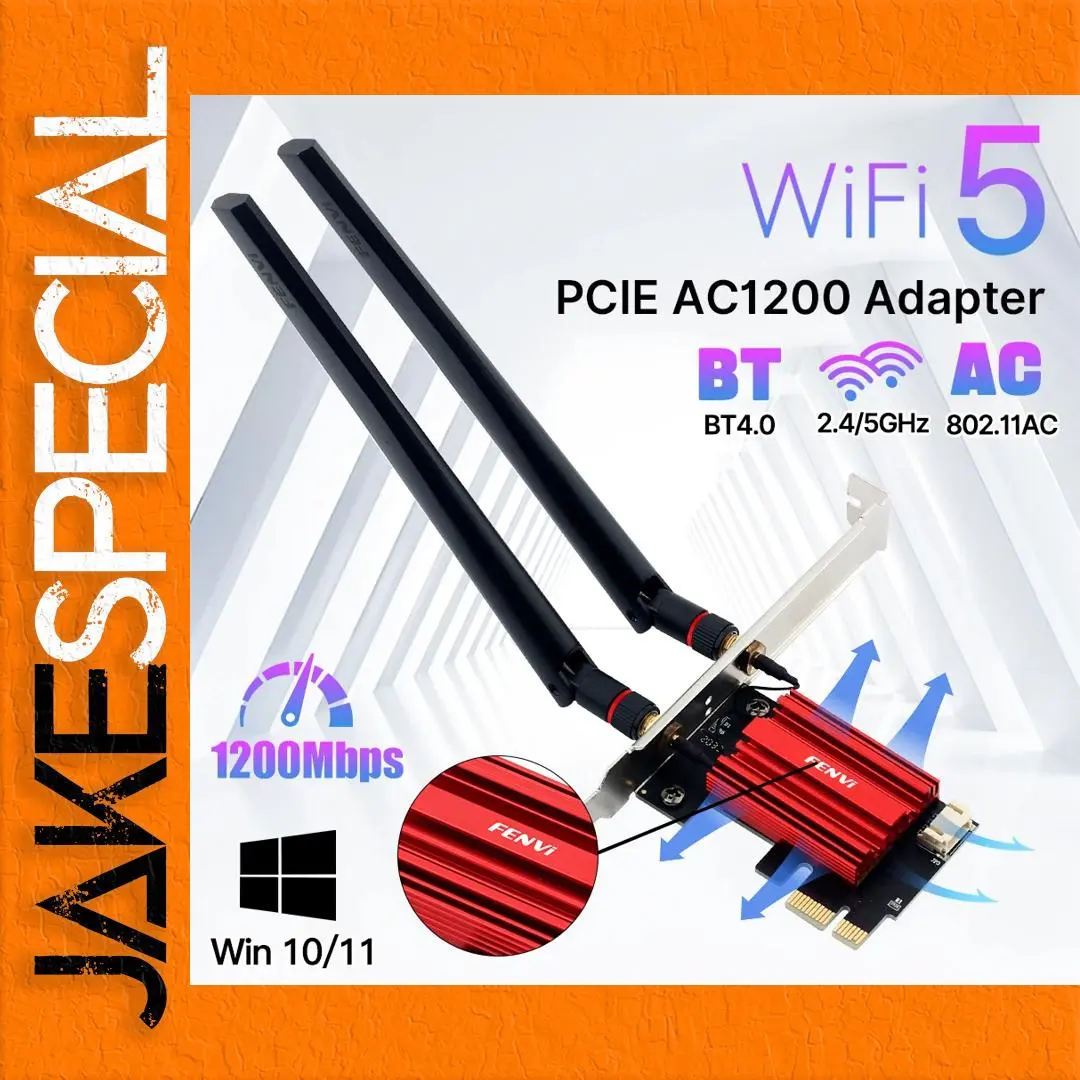The FENVI WiFi 5 AC1200 PCI-E WiFi Adapter is the key to unlocking a high-speed internet experience on your desktop. With its sleek red aluminum body and striking design, this adapter not only enhances your desktop aesthetics but also ensures optimal connectivity. Featuring dual-band capabilities, the adapter supports speeds of 867 Mbps on the 5GHz band and 300 Mbps on the 2.4GHz band, making it perfect for gaming, streaming, and browsing. The Bluetooth 4.0 functionality complements its robust wireless performance, allowing you to connect various devices effortlessly. Imagine enjoying seamless connectivity and the satisfaction of a fast, stable internet connection right at your fingertips.