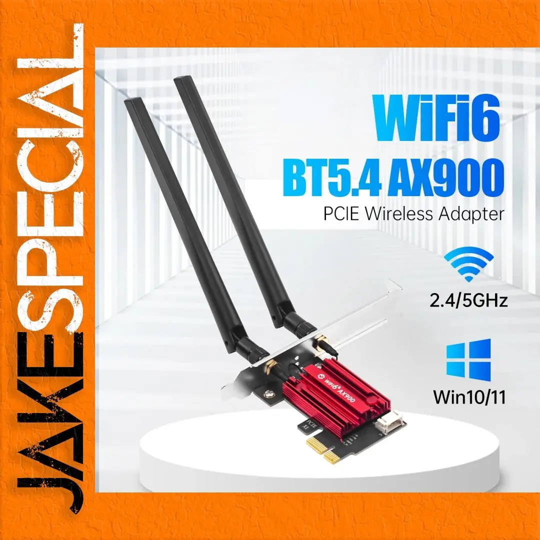 Experience seamless connectivity with the FENVI WiFi 6 AX900 PCI-E Adapter, model FV-AX900Pro. This remarkable adapter is designed to boost your desktop's wireless performance with dual-band capabilities, enabling transmission speeds up to 900Mbps. Imagine playing your favorite games with no lag, streaming shows effortlessly, and downloading at lightning speed, all thanks to its advanced features. With a striking red aluminum heat sink that not only looks modern but also effectively dissipates heat, this adapter is the perfect addition to your setup. Designed for compatibility with Windows 10 or 11, upgrading your connectivity has never been easier.