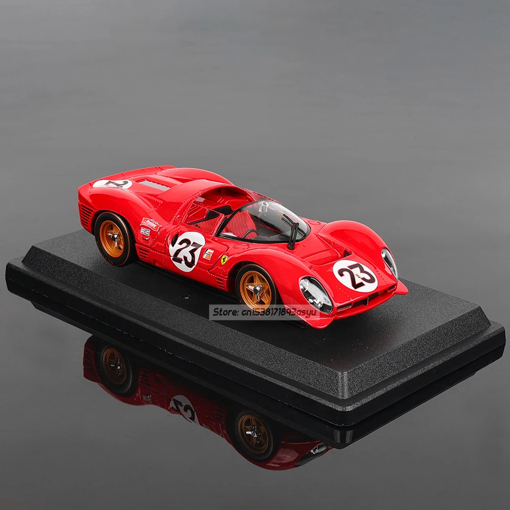 Experience the excitement of Ferrari racing with this beautifully detailed diecast metal model. Measuring approximately 22 cm in length, 7.5 cm in width, and 4 cm in height, it captures the essence of iconic Ferrari models like the 458, 355, 330, 488, 250 GTO, and FXX. The vibrant red finish instantly draws your eye, while the aerodynamic, sleek contours evoke speed and elegance. The model features authentic racing number decals, specifically number 23, displayed inside white circles on the hood, sides, and rear fin—making it perfect for display or collection. The transparent black canopy adds a touch of sophistication, complemented by realistic vents, grills, and gold-painted racing wheels, bringing Ferrari's high-performance design to life. This model is a must-have for Ferrari enthusiasts and collectors alike.
