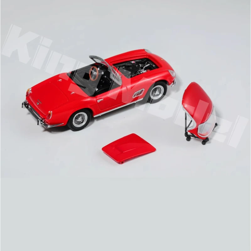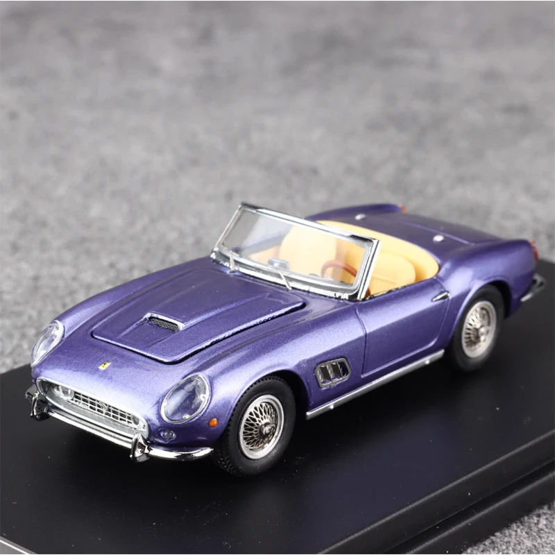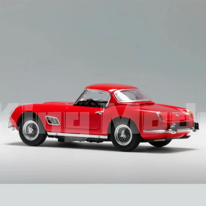 Immerse yourself in the timeless elegance of the Ferrari 250GT California with this meticulously crafted diecast model. Measuring at a 1:64 scale, it captures every intricate detail of the classic sports car, from its vibrant glossy red finish to the contrasting silver roof and chrome accents. With carefully simulated flowing lines, rounded headlights, and a detailed front grille bordered by a chrome-like finish, this model exudes authenticity and style. The silver wire-spoke wheels with textured black tires add a touch of sophistication. Ideal for collectors and enthusiasts, this model allows you to bring a piece of vintage automotive history into your display space and relive its legendary design.