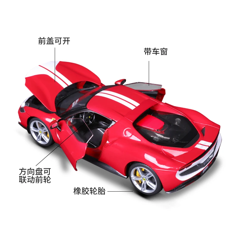 - Four-wheel free rotation and suspension system replicate the performance and stance of the real Ferrari 296 GTB.