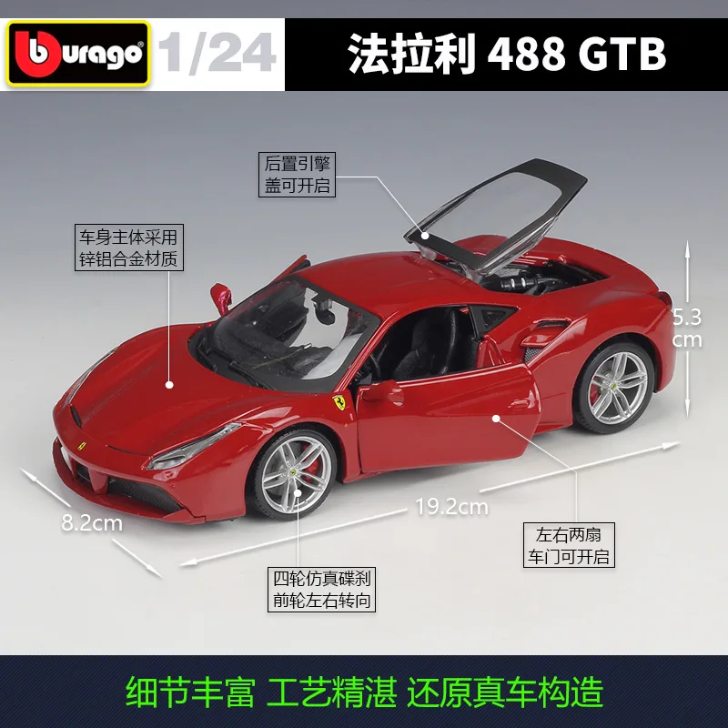 - This 1:24 scale model is crafted from high-quality diecast metal for durability and a premium feel, capturing every detail of the authentic Ferrari 488 GTB's sporty exterior.