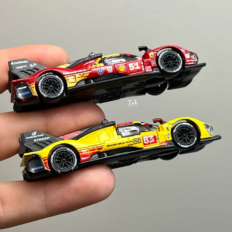Experience the thrill of racing with this meticulously crafted 1:64 scale die-cast model of the Ferrari 499P #83 from the 2024 24h Le Mans race. Made from high-quality metal alloy, this miniature vehicle radiates luxury and precision, capturing every aerodynamic detail. Its vibrant red finish with black accents highlights the sleek contours, racing decals, and distinctive rear wing. The clear cockpit canopy reveals detailed interior accents, adding realism to your collection. This model is perfect for display and enthusiasts who appreciate authentic craftsmanship. Designed for collectors aged 14 and above, it combines durability with exquisite detail. Elevate your collection with this iconic Formula race car, bringing high-speed sportiness right into your hands.