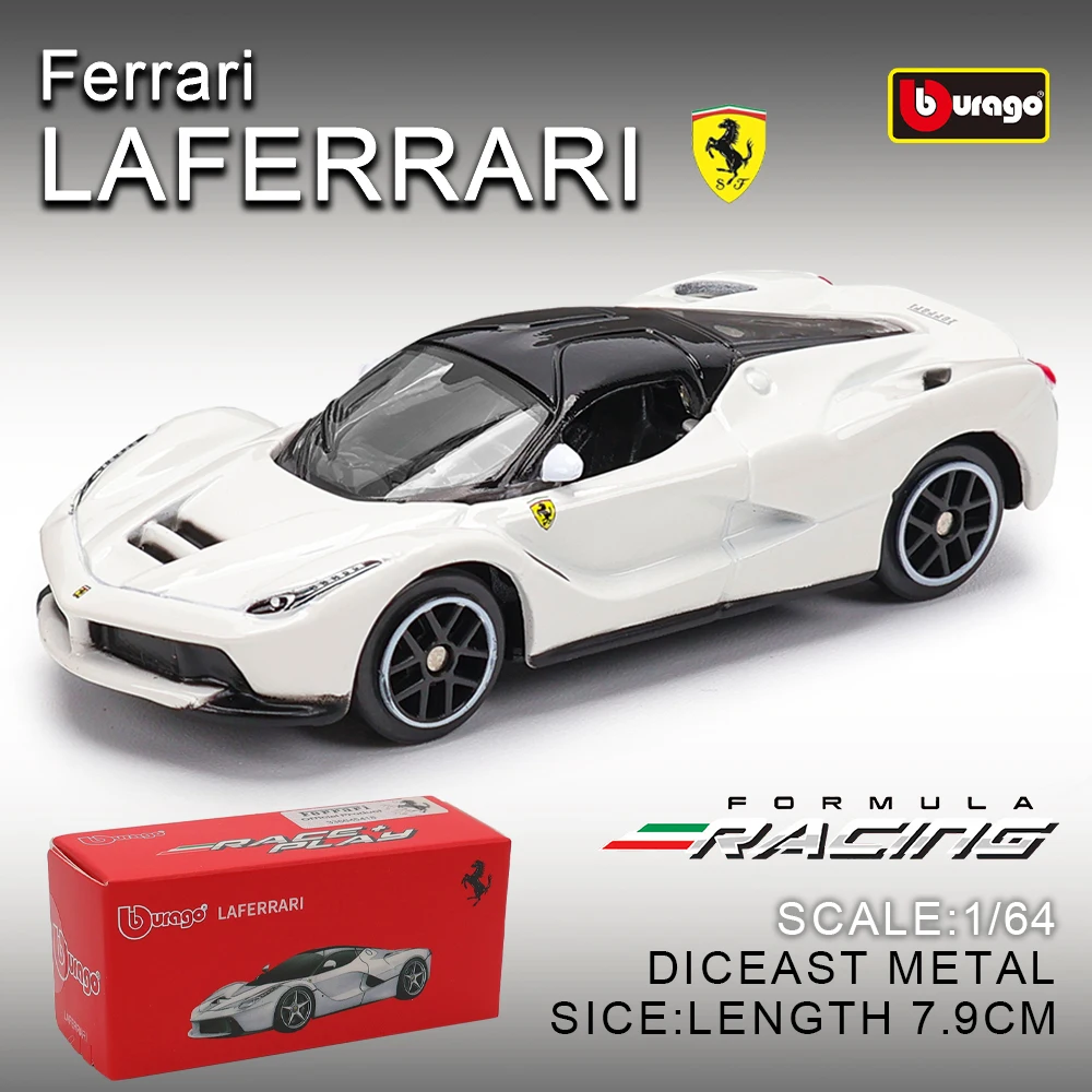 - Made of zinc alloy, plastic parts, and rubber tires, ensuring durability and realistic appearance. The detailed exterior reflects Ferrari’s signature aerodynamic design and aggressive stance.