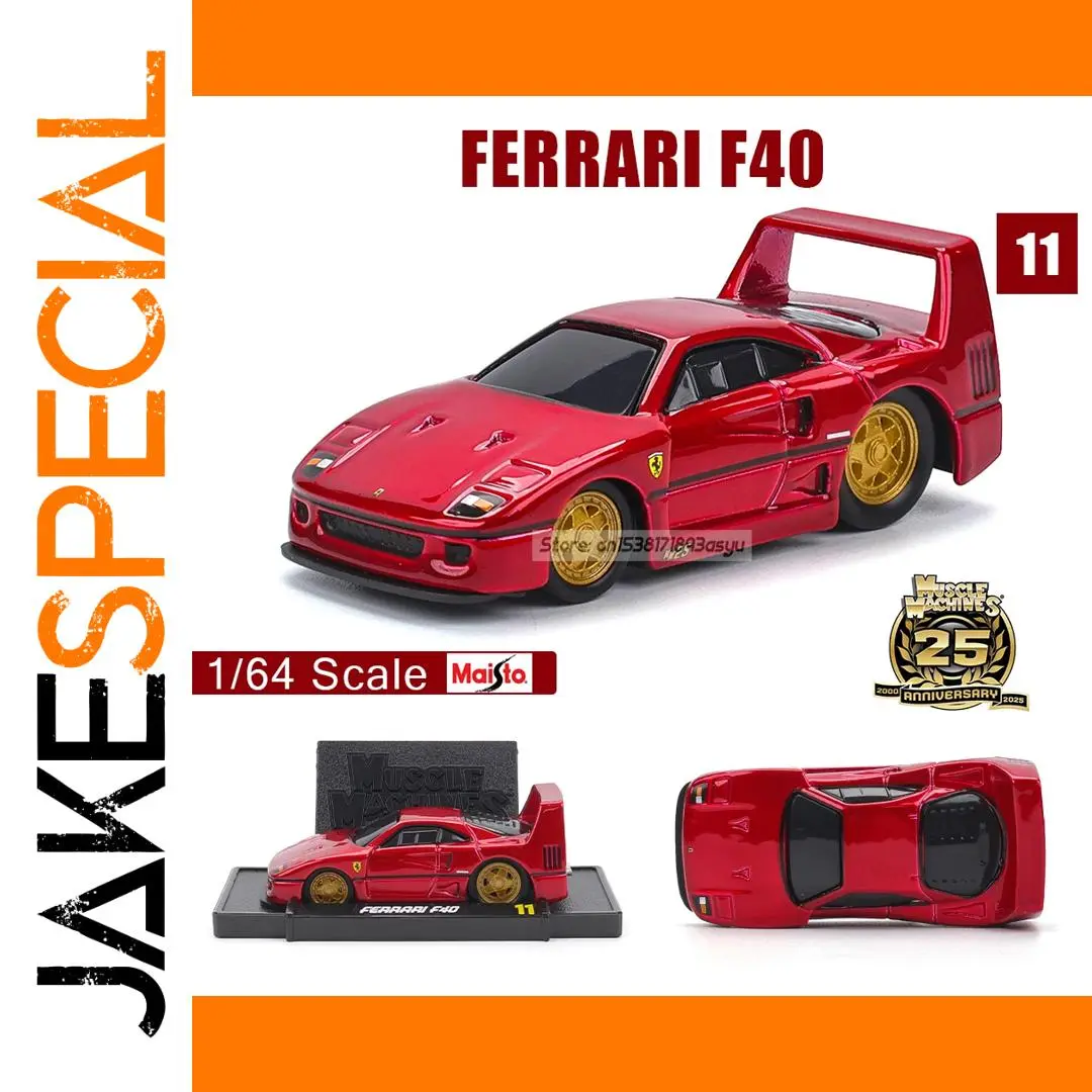 Experience the thrill of our detailed 1:64 scale diecast model car, showcasing the iconic 2025 25th Muscle Car and legendary Ferrari F40 in vibrant red and white colors. Crafted from high-quality metal, this finished collectible emphasizes realism with finely detailed features, aerodynamic curves, black accents, and gold multi-spoke wheels that evoke speed and sophistication. Its sleek, low-profile design with subtle panel lines, pop-up headlights, and rear wing spoiler captures the essence of high-performance automotive engineering. Suitable for ages 4 and above, this educational model is perfect for enthusiasts and collectors seeking a striking display piece that combines craftsmanship, style, and a passion for automotive excellence.