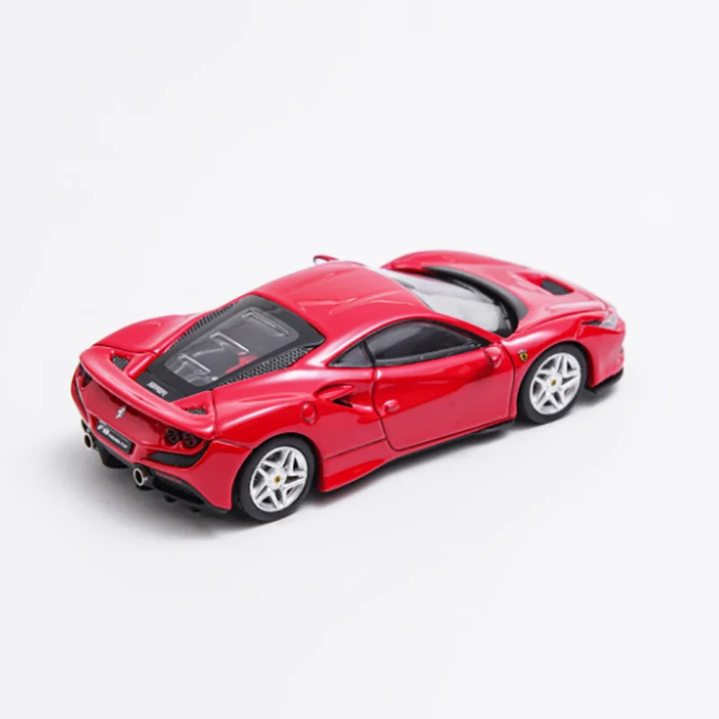 This diecast 1:64 scale alloy model captures the sleek, aerodynamic design of the Ferrari F8 Tributo sports car, crafted for adult collectors and static display. Finished in vibrant, glossy red with realistic details such as slender headlights, sculpted side panels, clear windows revealing a simplified interior, contoured tail lights, and multi-spoke white wheels with detailed treaded tires, it showcases exceptional craftsmanship. The model measures approximately 1:64 scale, made of durable alloy material, and is designed for display rather than play. Available in three color variations—B, A, and C—this highly detailed collectible is perfect for enthusiasts who appreciate precision and elegance in miniature form.