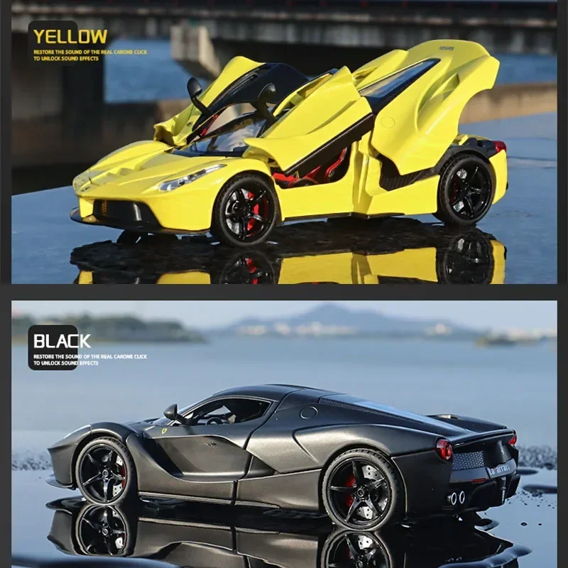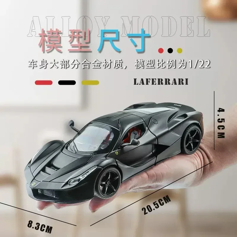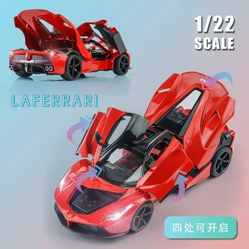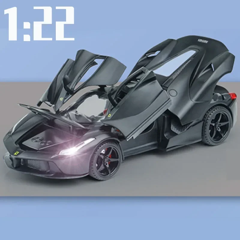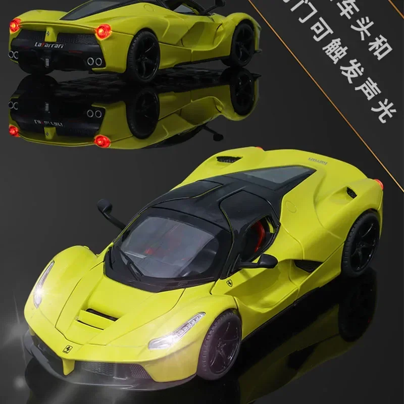 Experience the thrill of owning this meticulously crafted 1:22 scale diecast alloy model of the Ferrari LaFerrari, featuring a striking red finish with a sleek aerodynamic design. Made from durable alloy with a plastic chassis and rubber tires, this detailed collectible showcases openable gull-wing doors, realistic lighting, pull-back motion, and engaging sound effects that bring the model to life. Available in multiple colors, including black, yellow, gold, blue, and green, it is designed for enthusiasts aged 14 and above. Powered by three AG13/AG10 batteries (not included), this high-quality replica is perfect for collection, display, or as a gift for passionate car lovers.