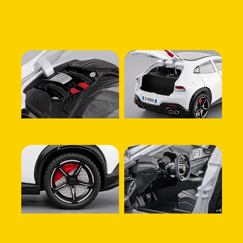Secure this exquisite diecast alloy model today and elevate your display with the perfect miniature of Ferrari’s iconic SUV. Whether for personal enjoyment or as a thoughtful gift, this detailed model captures the essence of luxury and performance. Its realistic design, combined with sound and light features, ensures it will be a standout piece in any collection. Add a touch of elegance and refinement to your space—your amazing Ferrari Purosangue replica awaits to impress. Don't miss out on owning this remarkable collector’s item today!