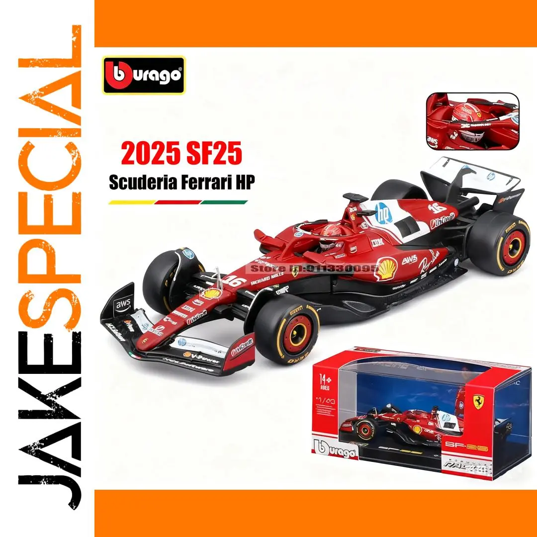 - This high-quality 1:43 scale die-cast alloy model depicts the 2025 Ferrari SF25, representing an authentic racing look with detailed aerodynamic elements, sponsor decals, and proportionate design for realistic display.