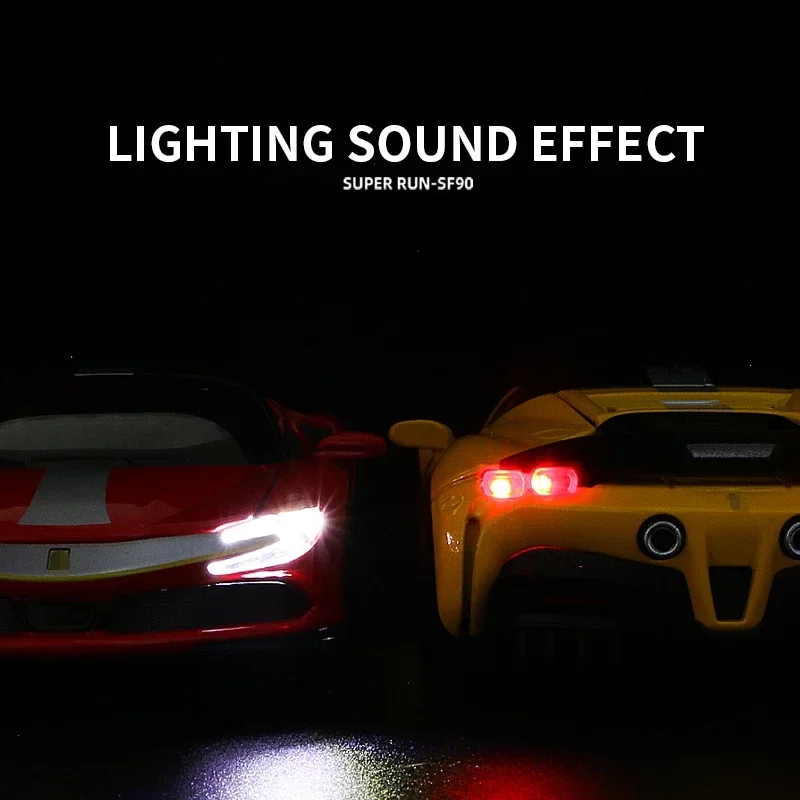- Scaled at 1:32, it measures proportionally to the full-size Ferrari SF90 Stradale, capturing every curve, vent, and detail for an authentic visual experience.