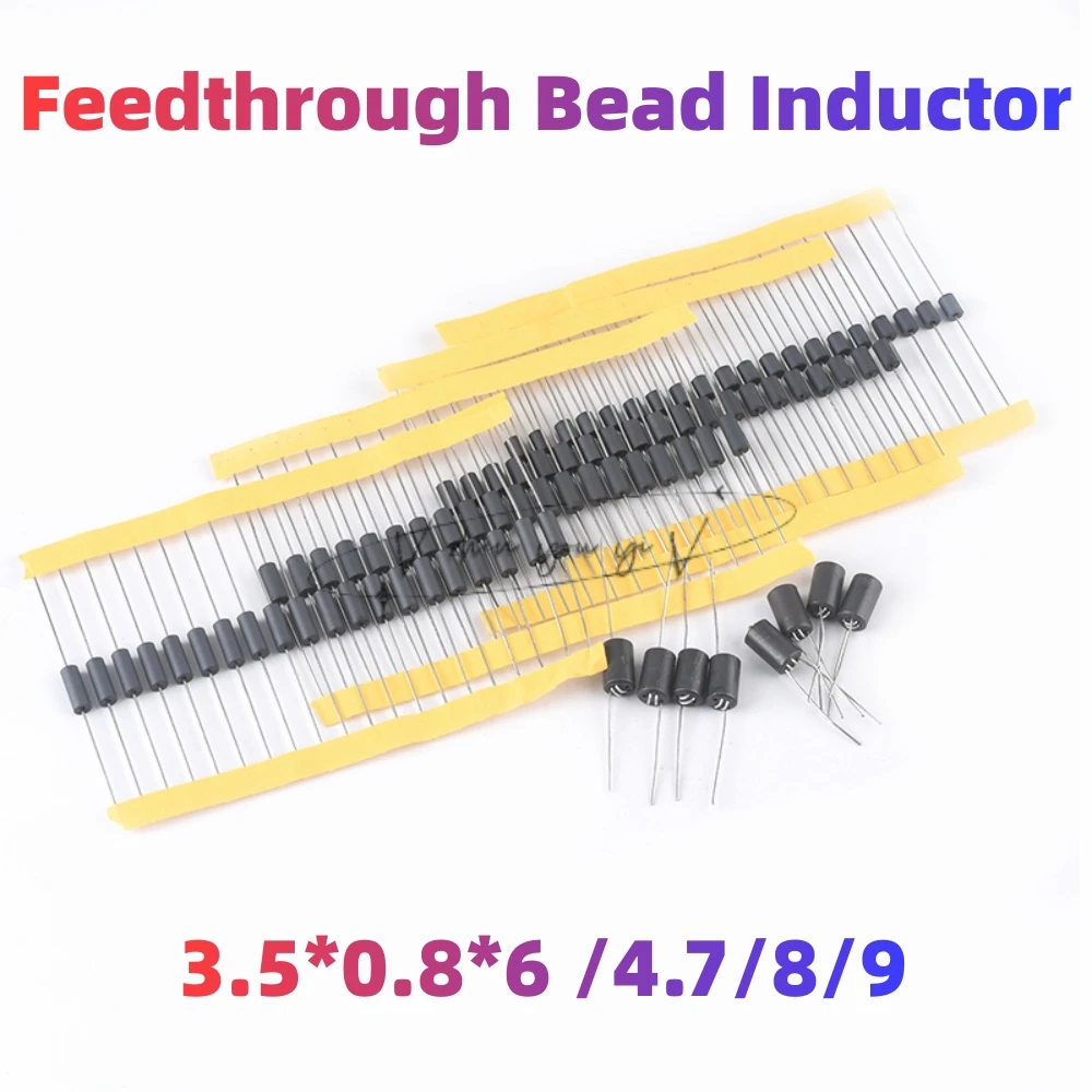 Enhance your electronic projects with this set of 100 high-quality ferrite core inductor beads available in four sizes: 3.5×0.8×4.7 mm, 3.5×0.8×6 mm, 3.5×0.8×8 mm, and 3.5×0.8×9 mm. Featuring axial leads and customizable inductance, these beads are ideal for filtering, noise suppression, and inductance applications in sophisticated circuit designs. Their sleek cylindrical form displays a dark gray or black ferrite composition, with evenly spaced beads along a metallic assembly, creating a clean, professional aesthetic. Perfect for engineers and electronic enthusiasts, this versatile set ensures reliable, precise performance across various projects.