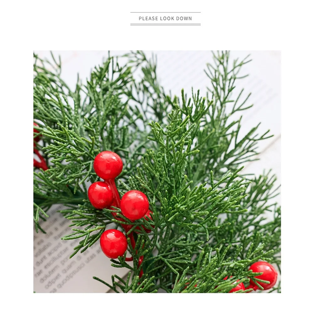 - Complete holiday look with vibrant green pine leaves and red artificial berries, enhancing the festive atmosphere for outdoor and indoor decoration.