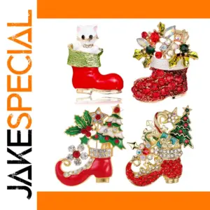 Celebrate the holiday season with this exquisite Christmas-themed alloy brooch, featuring four intricate designs inspired by festive motifs. Each piece showcases vibrant red, shimmering gold, lush green, and icy grey colors, with detailed embellishments such as rhinestones, crystals, and textured finishes. The brooch is unisex and suitable for various styles including elegant, trendy, gothic, or minimalist, making it perfect for jackets, backpacks, hats, or DIY projects. Dimensions match the reference image, with a 1-3mm size variation allowance. Crafted with care in Mainland, it offers a durable, eye-catching accessory that adds a touch of holiday charm to your wardrobe.