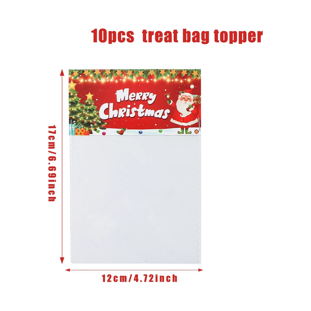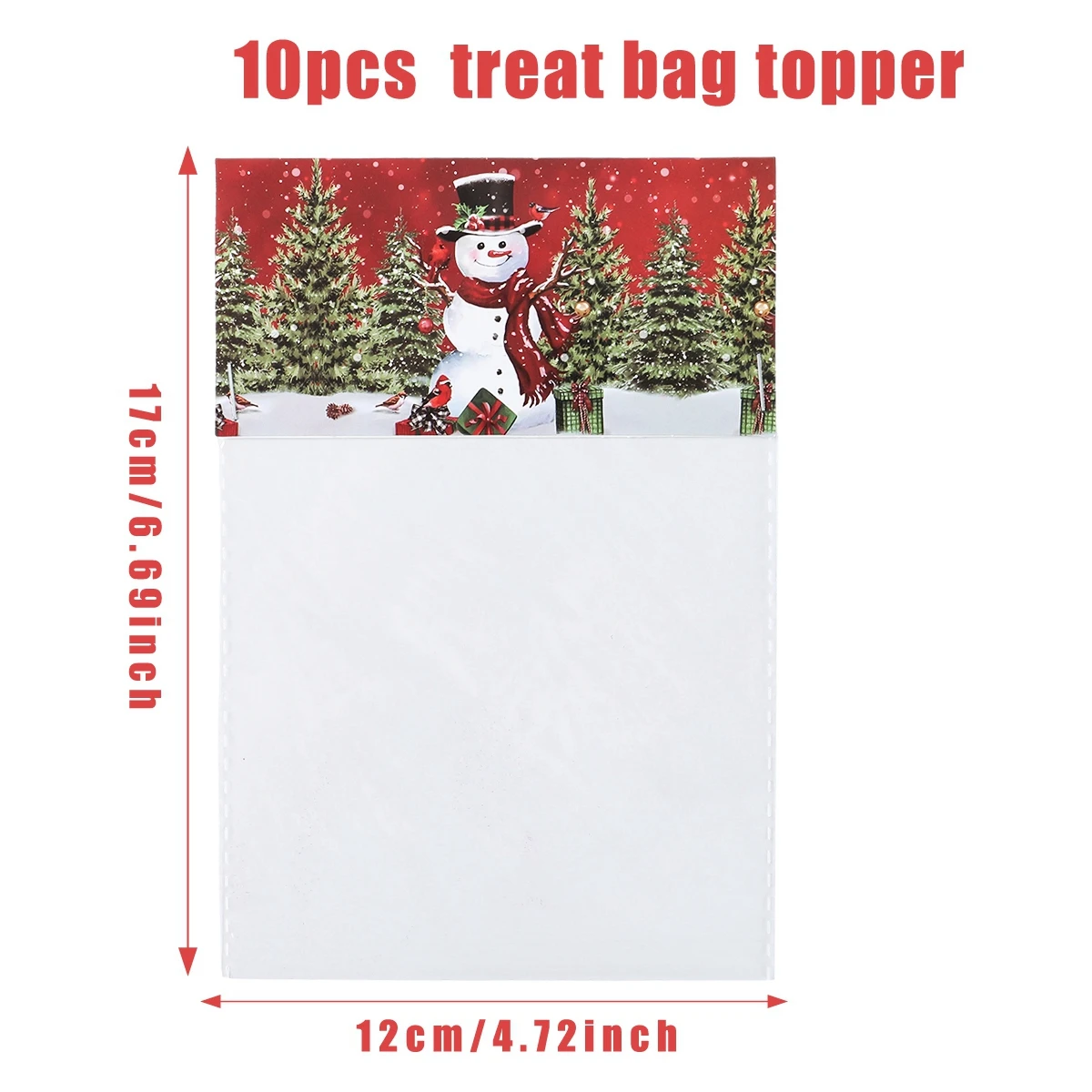 - Available in four distinct color and design variants—Treat Bag Topper, Topper 1, Topper 2, and Topper 3—each with charming holiday motifs like snowmen, reindeer, Christmas trees, and Santa Claus.
