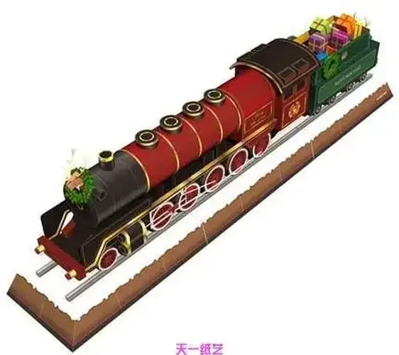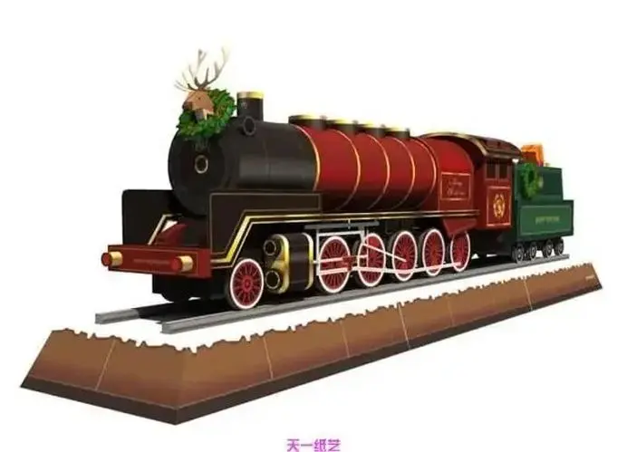 Transform your holiday season with this vibrant and handcrafted DIY Christmas Train paper model. Measuring approximately 37 cm when assembled, this colorful vintage-inspired locomotive will bring warmth and charm to your festive decorations. Designed for enthusiasts aged 14 and above, it invites you to engage in a fun, crafty activity by cutting, pasting, and assembling the detailed components. Featuring a striking red body accented with shimmering gold details, the model depicts a classic train with whimsical gold chimneys and decorative symbols. The realistic wheels and structural elements, rendered in red, black, white, and gray, enhance its lively, handcrafted appearance. This model offers a perfect blend of holiday cheer and educational craft, adding a cozy, nostalgic touch to your winter décor.