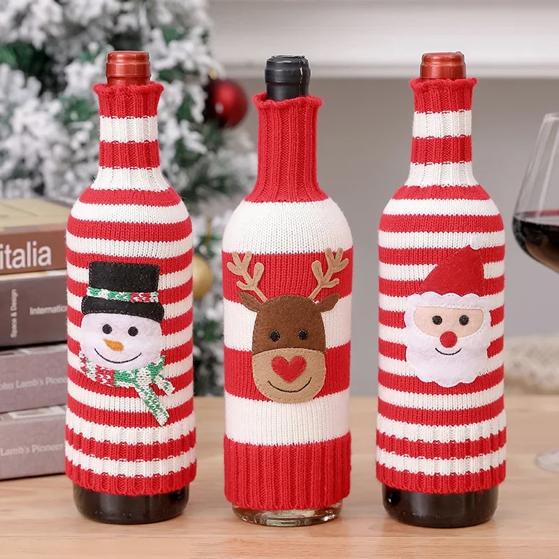 Celebrate the holidays with this festive, handcrafted Christmas wine bottle cover measuring 9 x 27 cm, crafted from high-quality knitted wool and acrylic fiber. Featuring three charming patterns, including Santa Claus and elk, in eight vibrant color options, it adds a cozy, cheerful touch to your holiday décor. This reusable cover fits standard wine and champagne bottles perfectly, providing a realistic texture and a safe, non-toxic material. Ideal for holiday gatherings, gifts, or adding a festive flair to your home, it combines durability, craftsmanship, and holiday spirit for an enchanting seasonal accent.