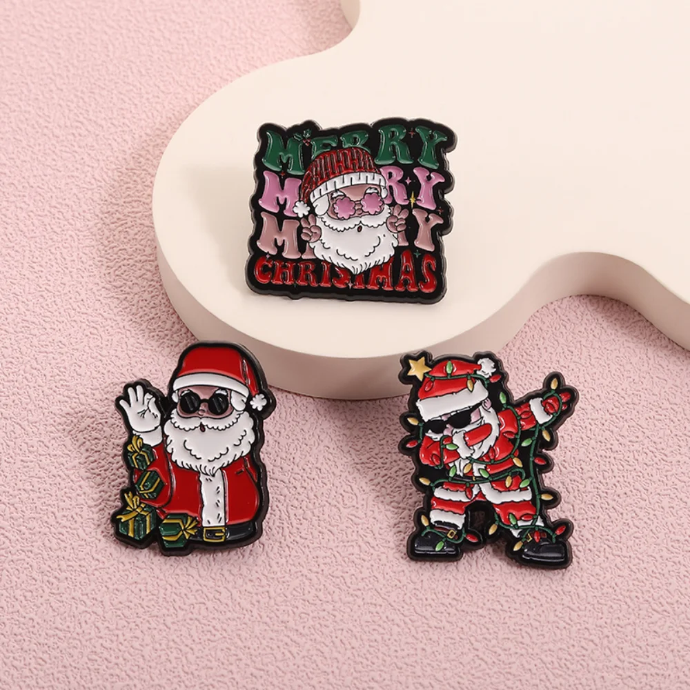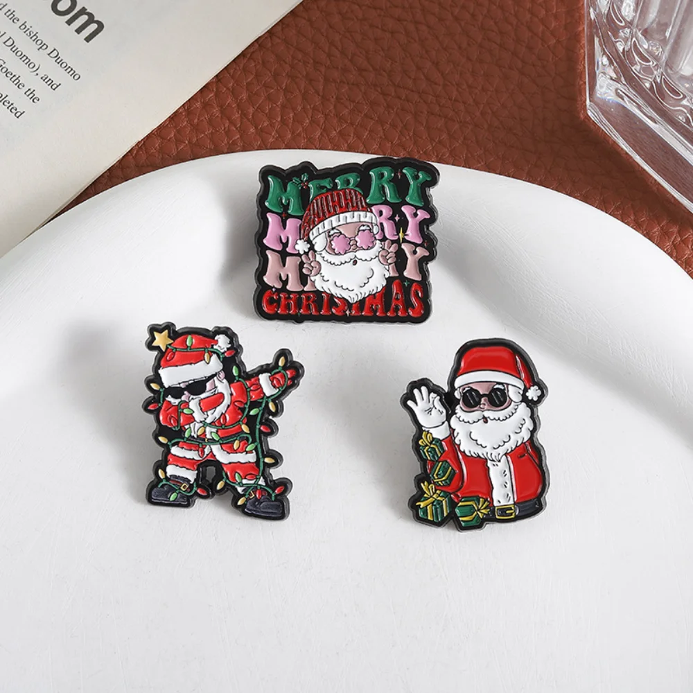 Add a festive touch to your wardrobe with this vibrant, Santa Claus-shaped alloy brooch, perfect for clothing, backpacks, hats, and DIY projects. Featuring playful, colorful designs in light grey, light yellow, and light green options, each piece measures approximately 1-3mm with a durable glossy finish. The brooch showcases a cheerful Santa face adorned with fluffy white beard, red hat with white pom-pom, and trendy accessories like pink fluffy glasses or black sunglasses, blending traditional holiday cheer with modern, whimsical style. Suitable for unisex wear, it’s ideal for enhancing jackets or accessories with lively, American-inspired design elements, all tested for quality and safety.