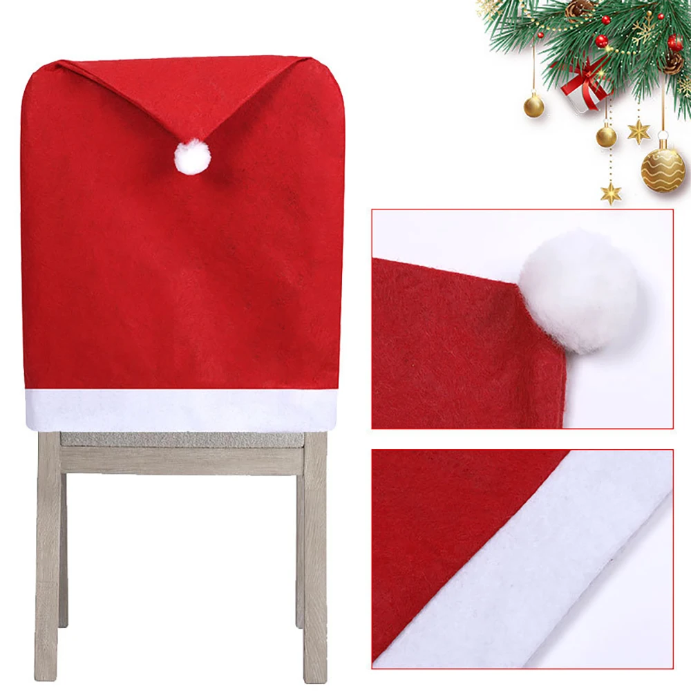Transform your dining space into a joyful holiday haven with this charming Santa hat chair cover. Crafted from soft, felt-like material in vibrant red, it features a pointed, drooping tip with a white pom-pom, and a fluffy white trim along the bottom. Designed to fit snugly over your dining chairs, these covers instantly add a splash of festive color and whimsy to your Christmas celebrations. Imagine your friends and family enjoying dinner around the table, each chair decorated with this adorable Santa hat, creating a warm and cheerful holiday atmosphere. Easy to install and remove, this ornament elevates your decor effortlessly, making every meal feel special during the festive season.
