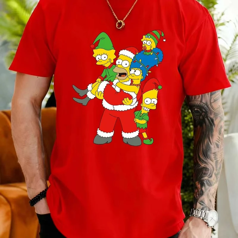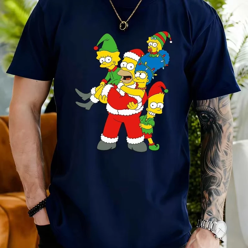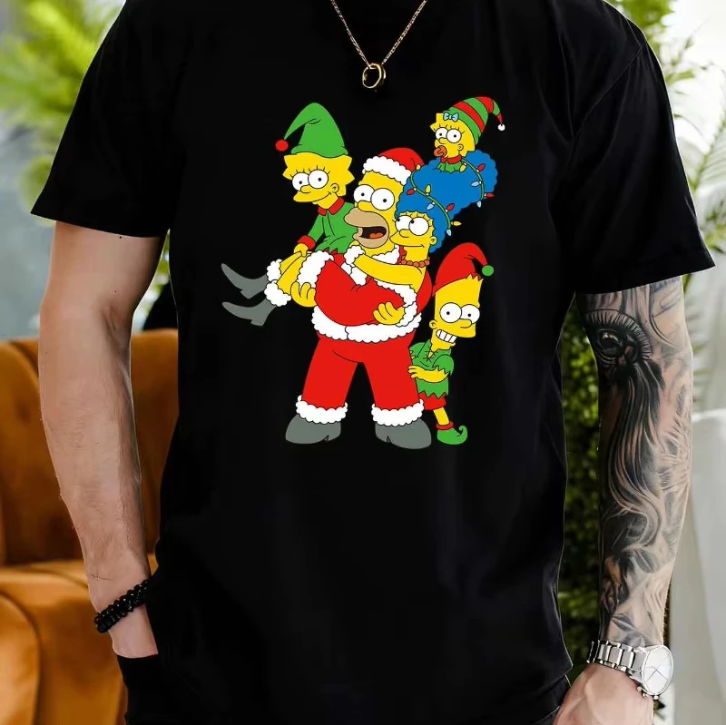 This men's casual short-sleeved T-shirt combines comfort, playful aesthetics, and seasonal joy, making it a versatile addition to your wardrobe. Whether you’re relaxing at home or heading out to a festive gathering, this shirt is designed to keep you comfortable and looking lively. Experience the fun of holiday style with a nostalgic cartoon twist, and enjoy the high-quality craftsmanship that ensures a lasting impression. Make this colorful, cheerful Simpsons Christmas T-shirt yours today!