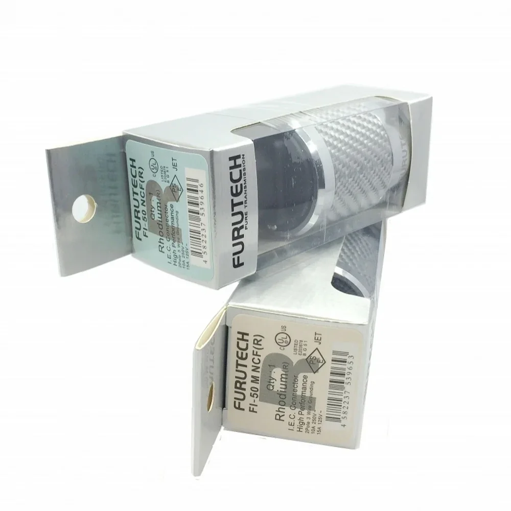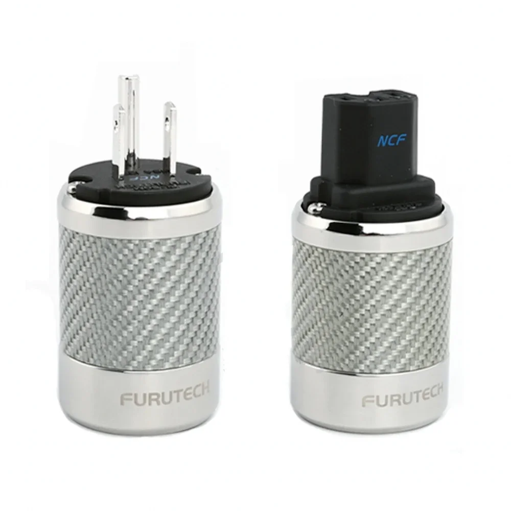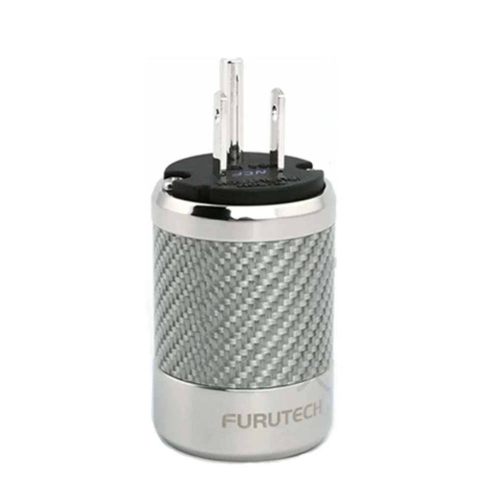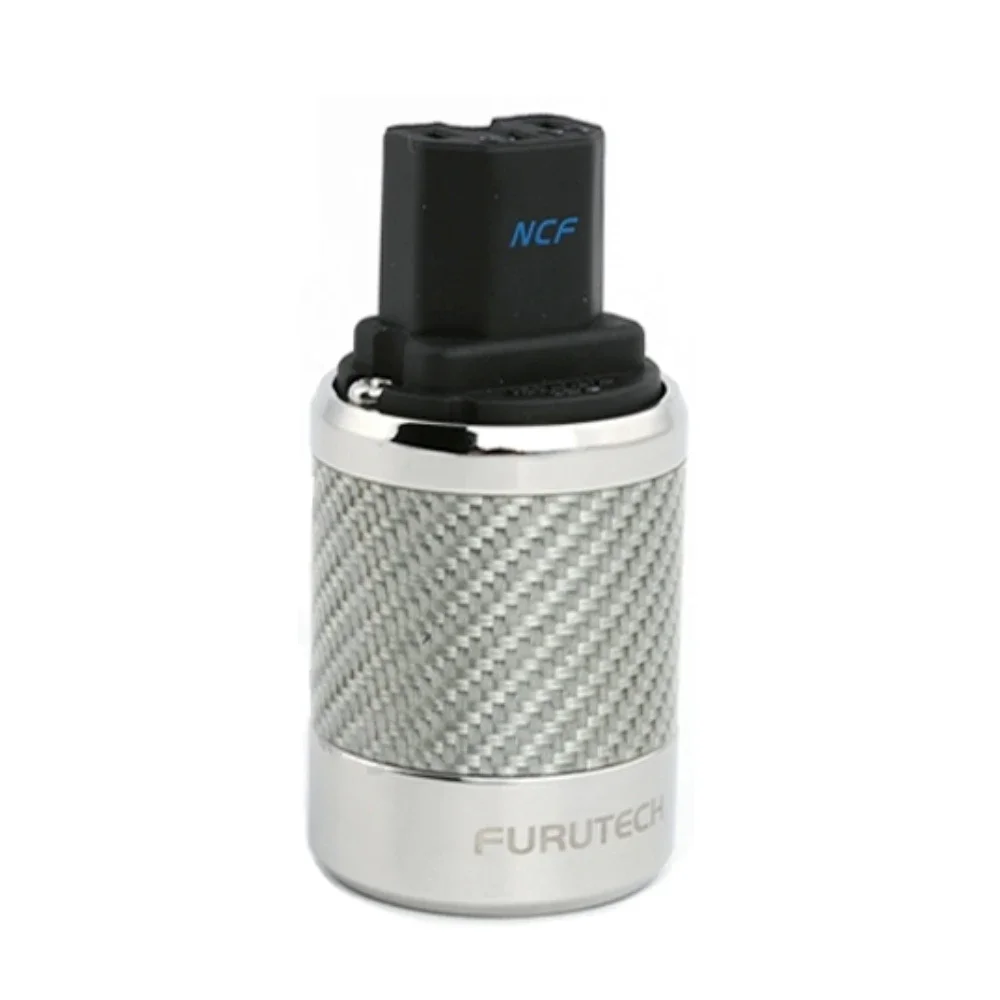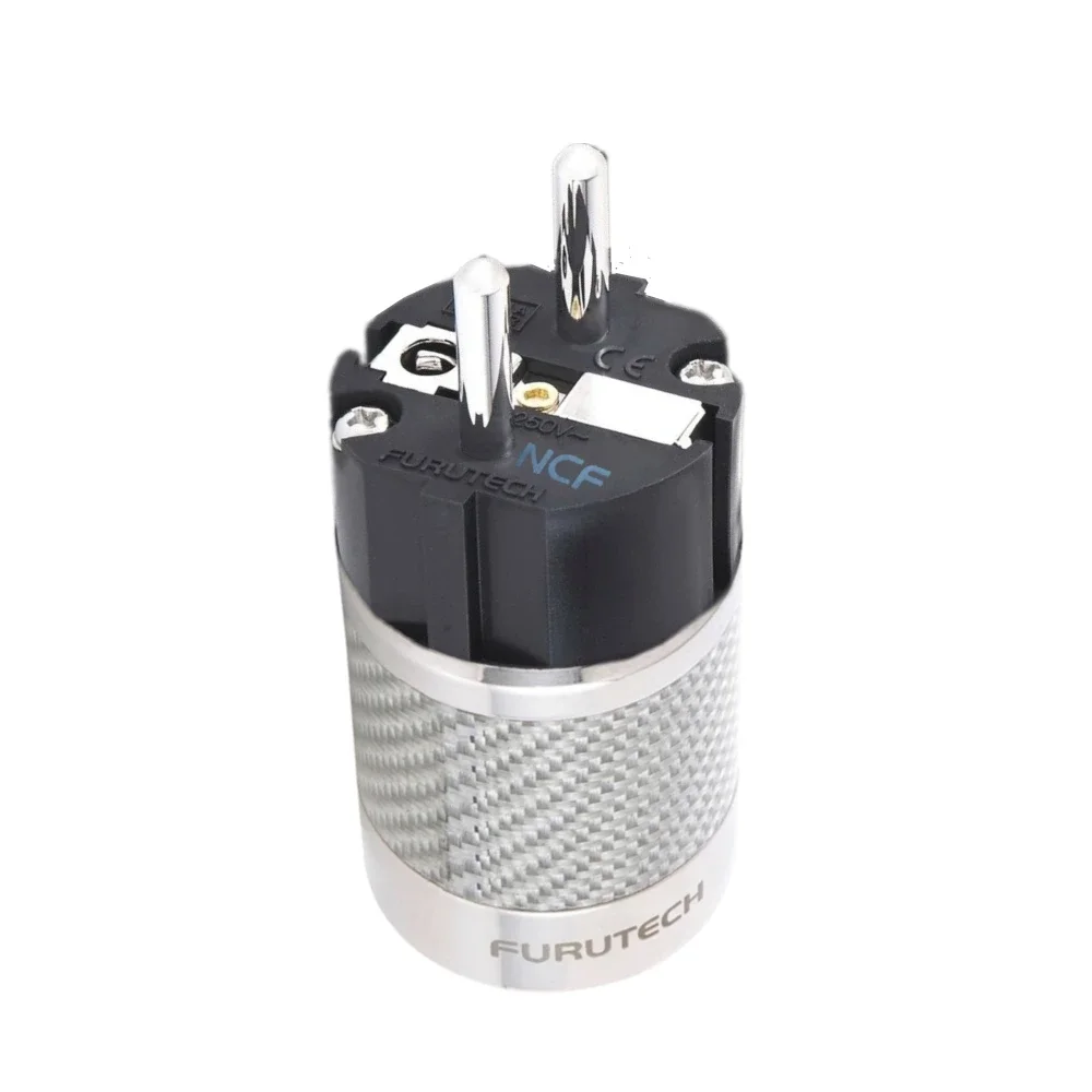 The FI-E50 NCF Power Supply Plug Adapter is engineered for audiophiles, featuring a textured metallic silver finish and a cylindrical body made from multilayered nonmagnetic stainless steel. It boasts a maximum current rating of 15A at 125V AC and 10A at 250V AC, with α Pure-Copper Rhodium-plated conductors for enhanced conductivity. The innovative Earth/Ground Jumper System minimizes EMI interference, while the adapter accommodates cables with diameters from 6mm to 20mm. The FI-E50 NCF measures 40mm in length and 34.5mm in diameter (76.2mm overall), while the FI-50 NCF is 44mm long and 34.5mm in diameter (80.3mm overall).