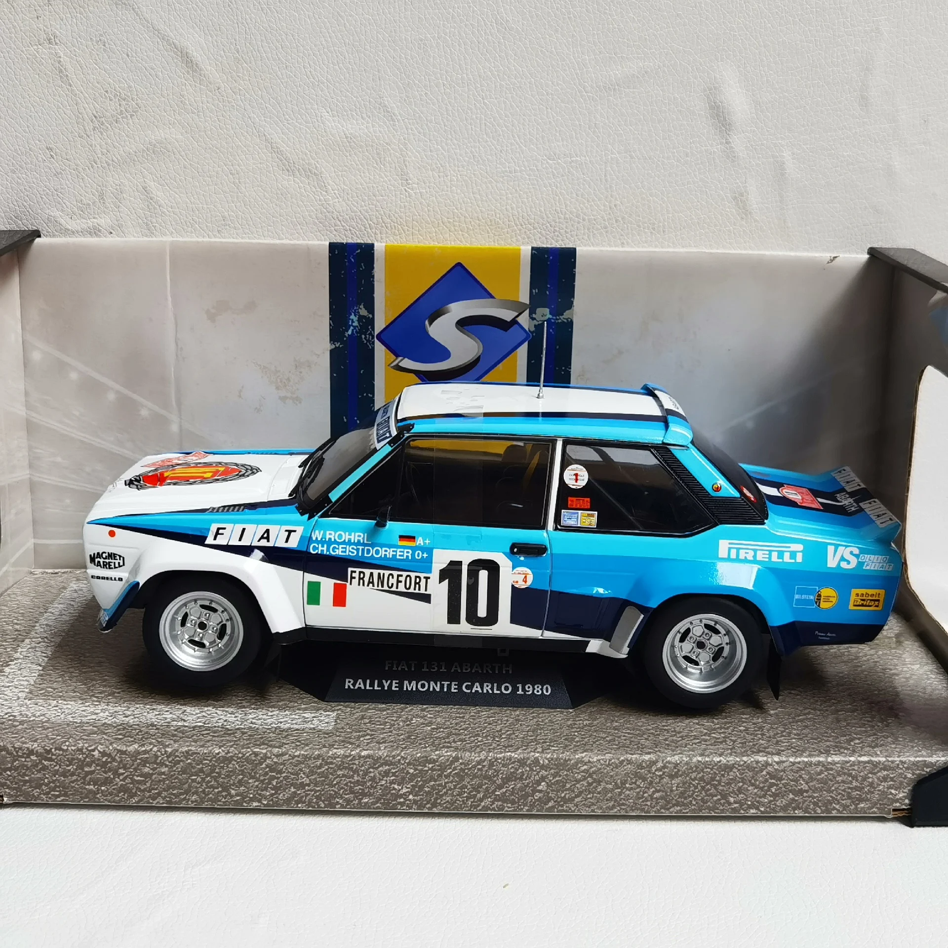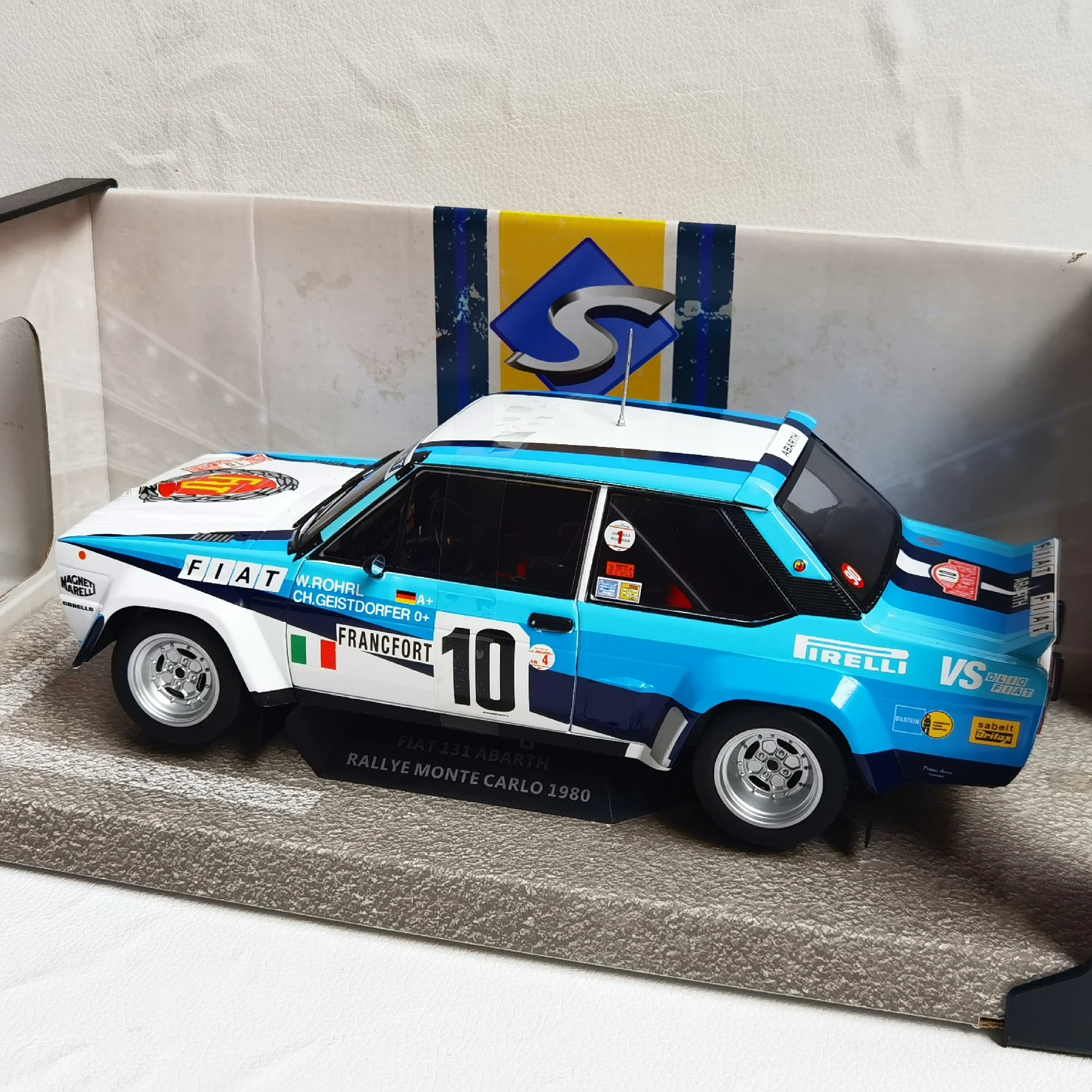 - The model faithfully replicates the 1980 Fiat 131 rally car, with vibrant, accurate decals, including sponsor logos and rally-specific details.