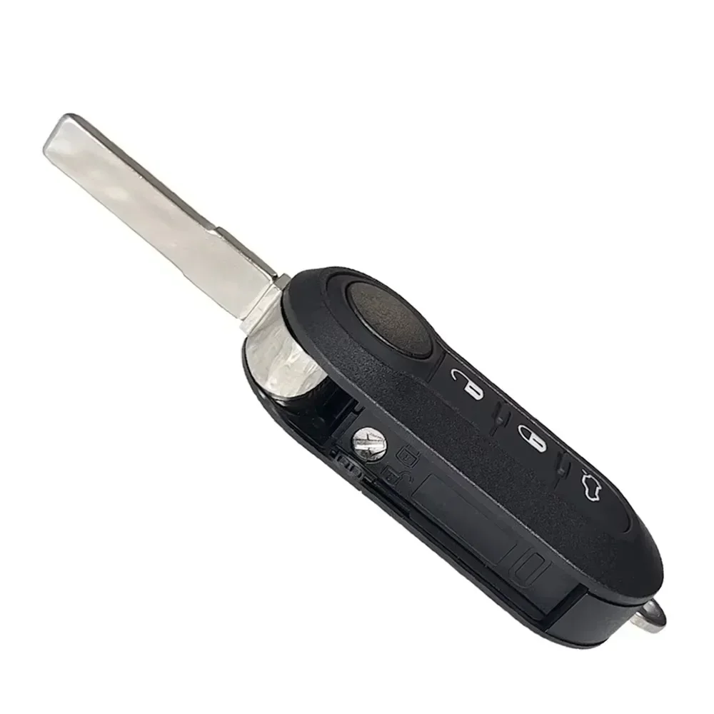 Upgrade your Fiat’s key with this sleek flip folding car key shell case cover, designed for compatibility with various models including the Fiat 500, Doblo, Bravo, Ducato, Qubo, and Grande Punto. This stylish cover is available in multiple variations: Black with 2 buttons, Black with 3 buttons, Black with 3 buttons spl, and White with 3 buttons. It features a polished black plastic body and a shiny metallic key blade, ensuring both elegance and functionality. Designed for MPV models from 2012-2016 and others from 2006-2012, please verify that your existing key matches in shape, buttons, and part number for seamless compatibility. Customization options are also available.