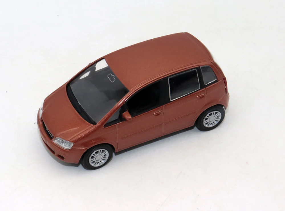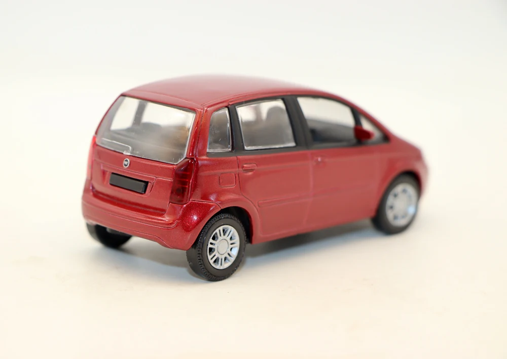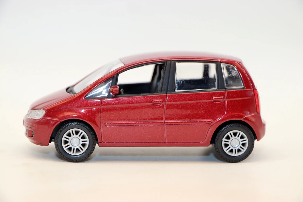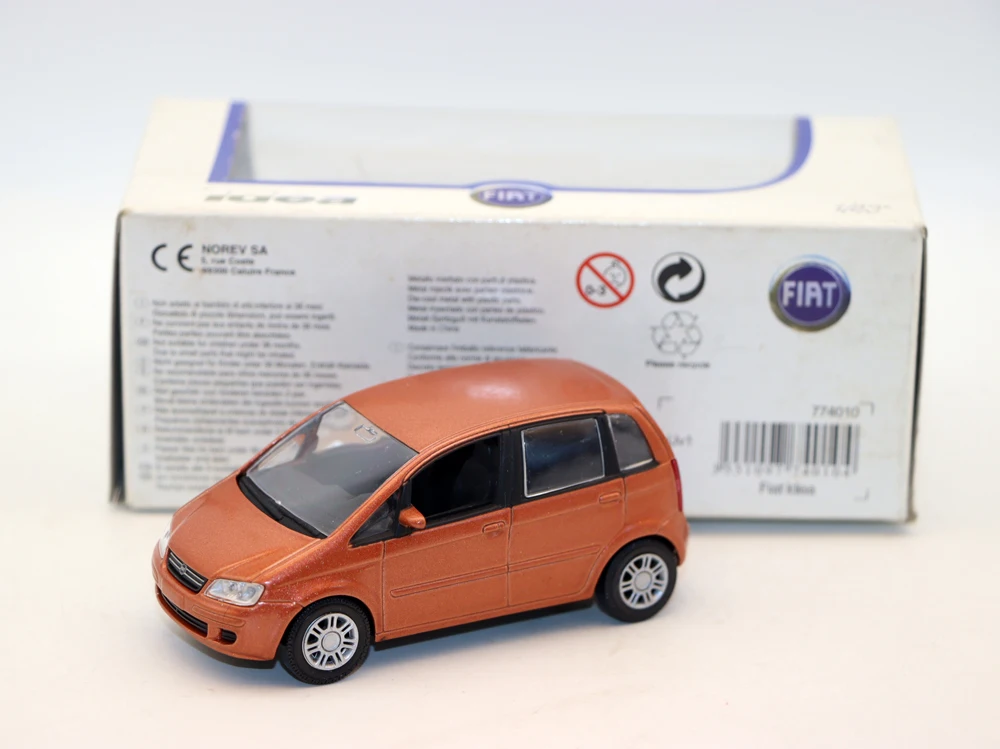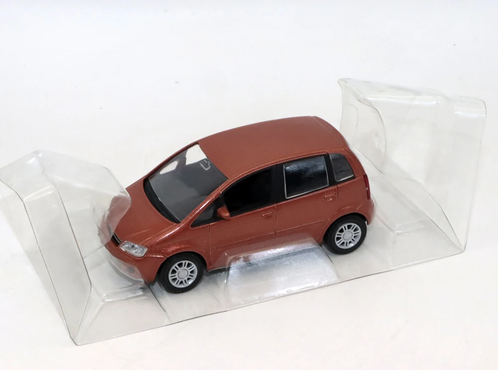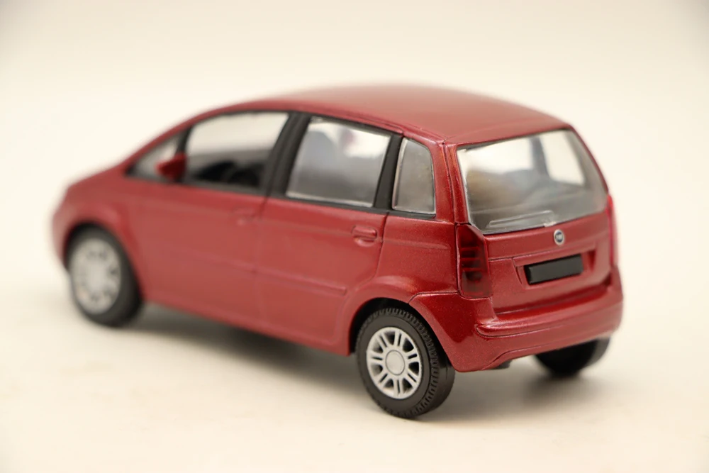 Experience the charm of the Fiat Idea SUV with this 1:43 scale model, crafted from high-quality diecast alloy and plastic, measuring approximately 8.5 cm. Its distinctive metallic brown color, paired with a glossy finish, captures attention. The model showcases rounded edges typical of SUVs, complemented by a stylish grille featuring the Fiat emblem and detailed headlights for realism. Clear plastic windows reveal a black interior with intricate seating and dashboard details. The wheels display a sleek five-spoke design with realistic black tires. This diecast model is perfect for collectors and enthusiasts who appreciate finely detailed automotive replicas.