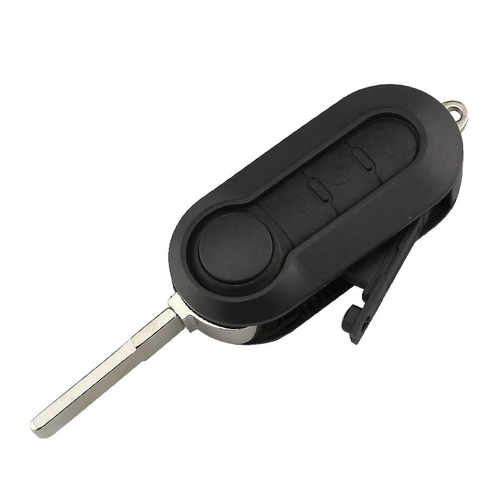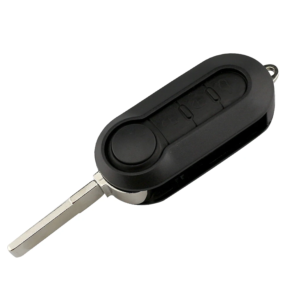 The remote car key shell is designed for various Fiat models, including 500, Panda, Punto, Bravo, Stilo, and Ducato, as well as the Peugeot Boxer and Citroen Jumper. It features a SIP22 blade and offers options for either 2 or 3 buttons, with a modern rounded, elongated oval shape and smooth matte black finish. Made from high-quality ABS plastic, it is durable, resistant to impacts, heat, and chemicals. Weighing only 0.05 kg, this replacement case requires the transfer of internal components from your old remote. Note that no interior electronics or transponder chip are included, and no logos are present.