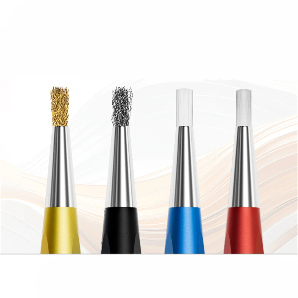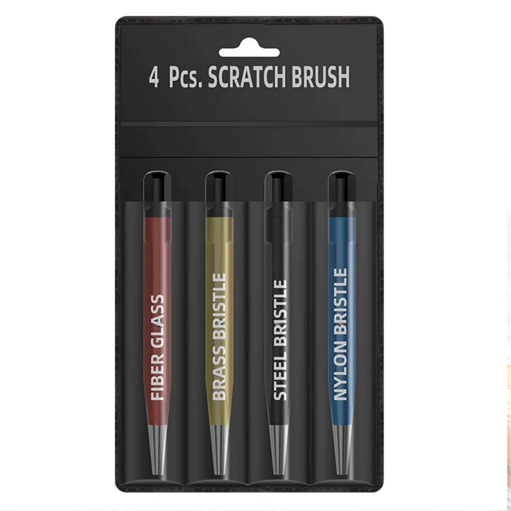 Experience precise watch cleaning and movement descaling with this set of four professional fiberglass descaling pen brushes, each measuring approximately 17 cm in length and 10.5 cm in width, weighing about 80 grams. Crafted from durable metal, these sleek tools feature vibrant colors—red, yellow, blue, and black—and are accented with metallic silver conical tips, offering both functionality and modern aesthetic appeal. Designed to support different watch parts, they effectively prevent staining, minimize wear, and ensure delicate component safety during maintenance. Ideal for watchmakers and enthusiasts, this set combines craftsmanship, efficiency, and style for optimal watch repair and care.