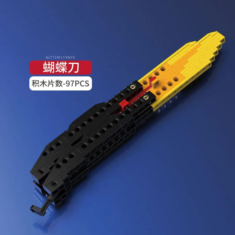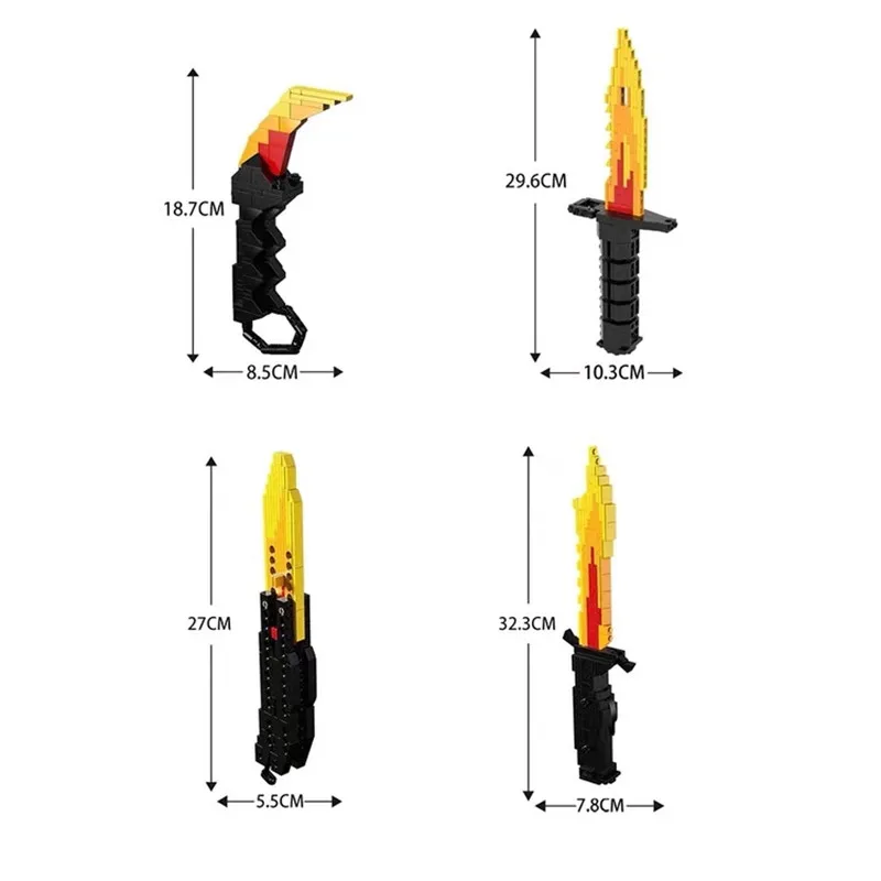 Unleash your creativity with this fiery building kit featuring four models—Q2110-A with 158 pieces, Q2110-B with 91, Q2110-C with 97, and Q2110-D with 176—crafted from high-quality ABS plastic. Build a dynamic flame-shaped weapon with a vibrant yellow, orange, and red flame blade, complemented by a sleek black and dark gray metallic handle with textured grip. Supported by black vertical rods for structural stability, the angular, geometric design captures a modern, fantasy-inspired aesthetic. Safe, durable, and CE certified, this non-electric, chemical-free kit is perfect for ages 6 to 12, inspiring hours of imaginative play and collectibles.