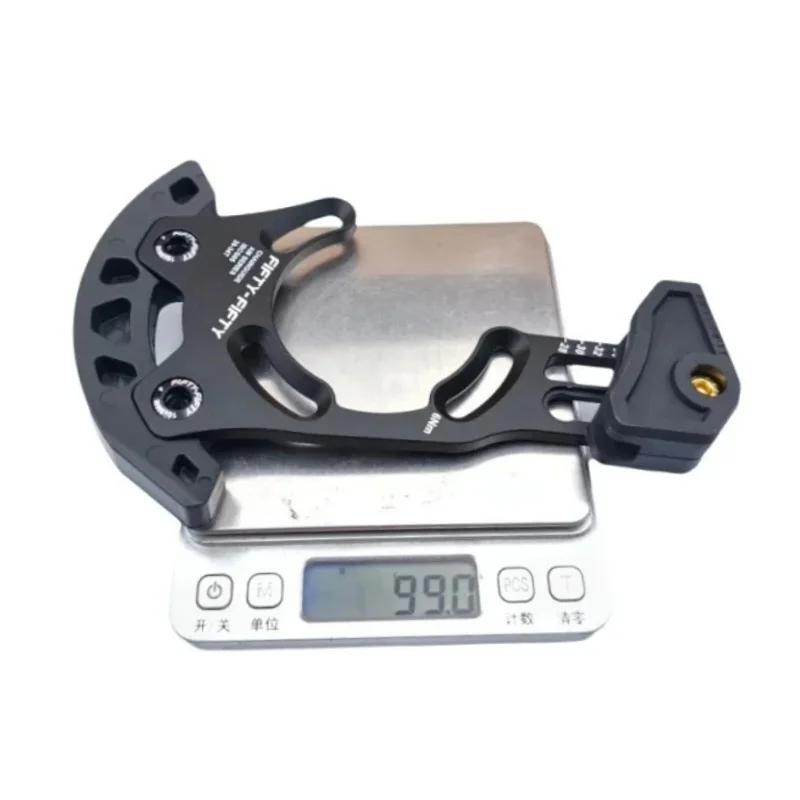 Experience enhanced mountain biking performance with this stylish and durable chain guide designed for serious riders. Crafted with premium anodized 6061 T6 aluminum, it offers a sleek black finish that complements any MTB setup. Its lightweight design features multiple strategic cutouts to reduce weight without sacrificing strength, ensuring optimal agility on rugged trails. The guide’s adjustable upper slider with a ring size indicator allows perfect chain retention for a range of gear sizes from 28-34T and 32-36T. Built to support aggressive styles like downhill, enduro, and freeride, this guide provides reliable drivetrain protection. Its robust nylon bashguard and high-quality alloy hardware guarantee long-term durability, noise reduction, and smooth operation. Elevate your MTB experience with this reliable, high-performance chain guide.