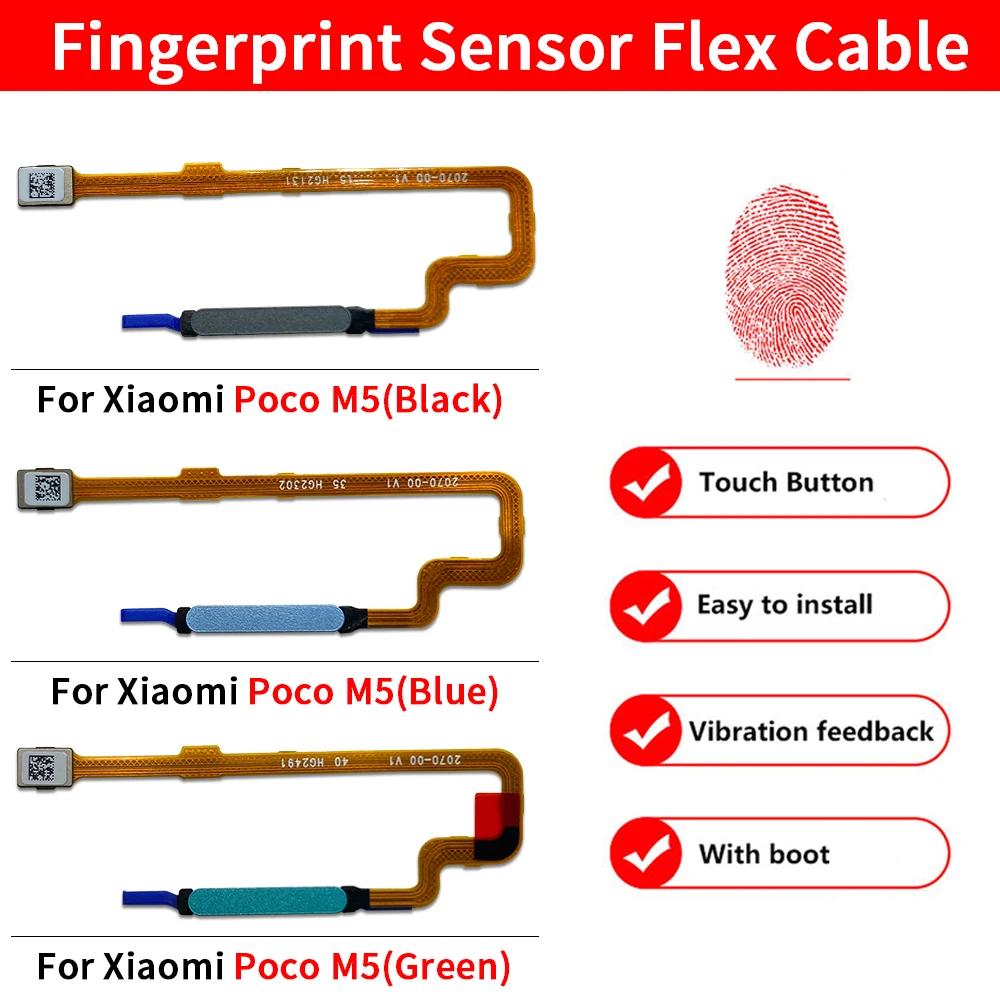 Experience enhanced functionality with this Fingerprint Sensor Home Button Flex Cable, designed specifically for Xiaomi Poco M5 and M5S models. Featuring a golden-yellow exterior, this replacement part boasts slim and flexible circuits for seamless integration. The cable not only enables reliable home button functionality but also supports fingerprint recognition with a power-on feature. Available in a range of colors, including Silver, Green, Purple, Black, Blue, Gold, Yellow, Gray, and White, it caters to various aesthetic preferences. Enjoy the confidence of a well-tested component that blends into your device beautifully, making your user experience more intuitive and efficient.