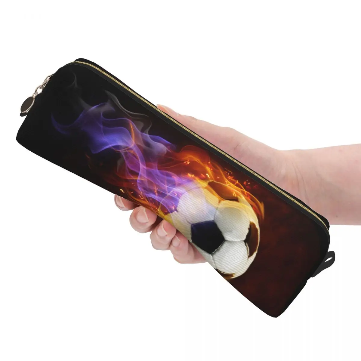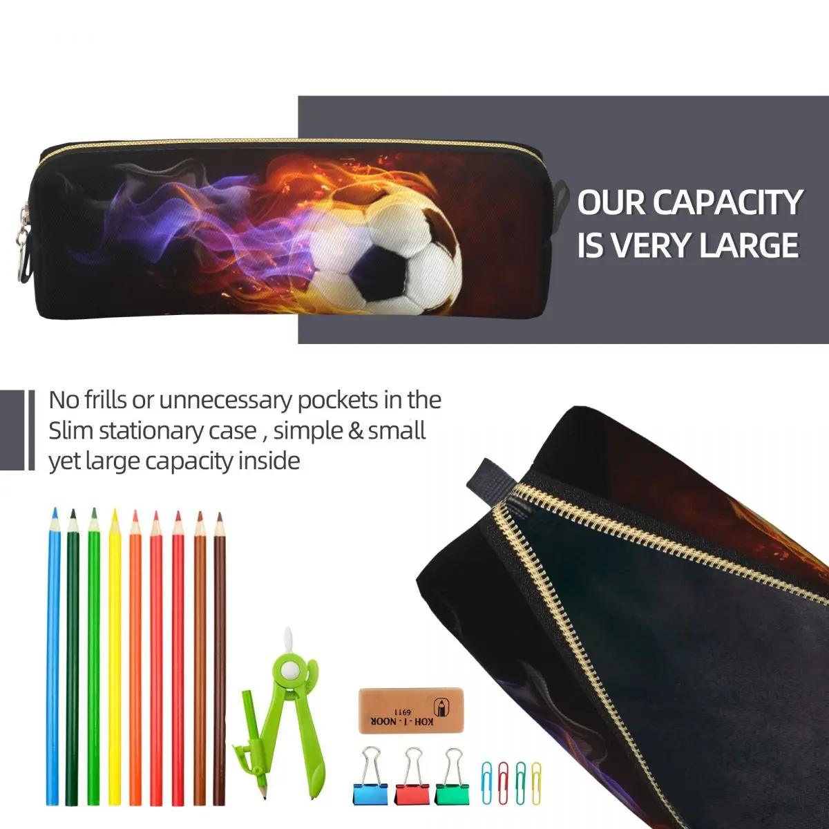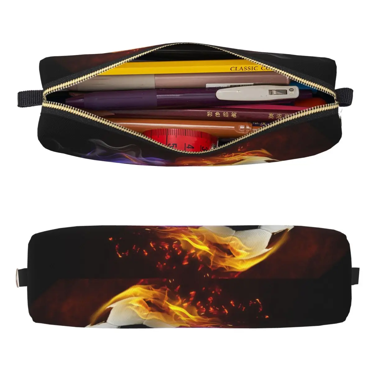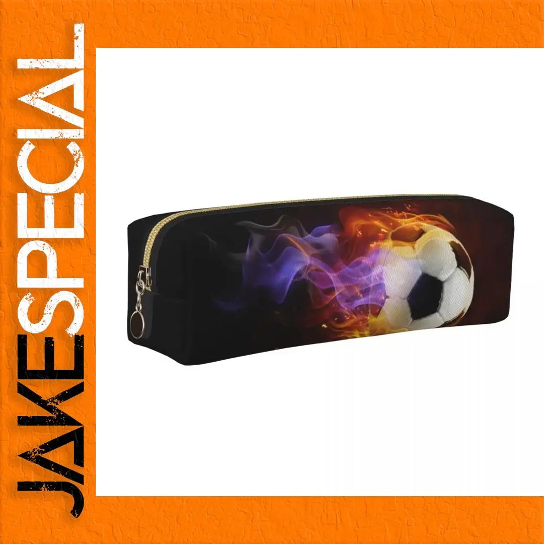 This vibrant Fire Soccer Pencil Case perfectly combines sports enthusiasm with functional design. Crafted from durable leather, its sleek black surface features an eye-catching illustration of a classic soccer ball in motion, surrounded by colorful flames and swirling smoke in shades of purple, orange, and yellow. This pencil case is ideal for students and professionals alike, offering ample storage for all your stationery needs. The elegant gold-toned zipper ensures secure closure, while the smooth surface enhances the overall aesthetic, making it a stylish accessory for anyone’s desk or backpack.