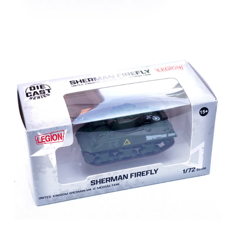Step into the world of military history with this highly detailed 1/72 scale Firefly IC/VC Tank model. Crafted from alloy and plastic, this static display captures the essence of 1944-1945 armored vehicles with realism and sophistication. Approximately 120mm long, it features a sleek, elongated profile with a long barrel positioned centrally on its turret, detailed panel lines, and access hatches. The model showcases subtle surface textures, realistic markings, including white triangles and bold numerals in red, enhancing its authenticity. Available in five color variants, it’s perfect for collectors seeking a historical masterpiece or decoration that commands attention. Elevate your collection today with this meticulously crafted model.