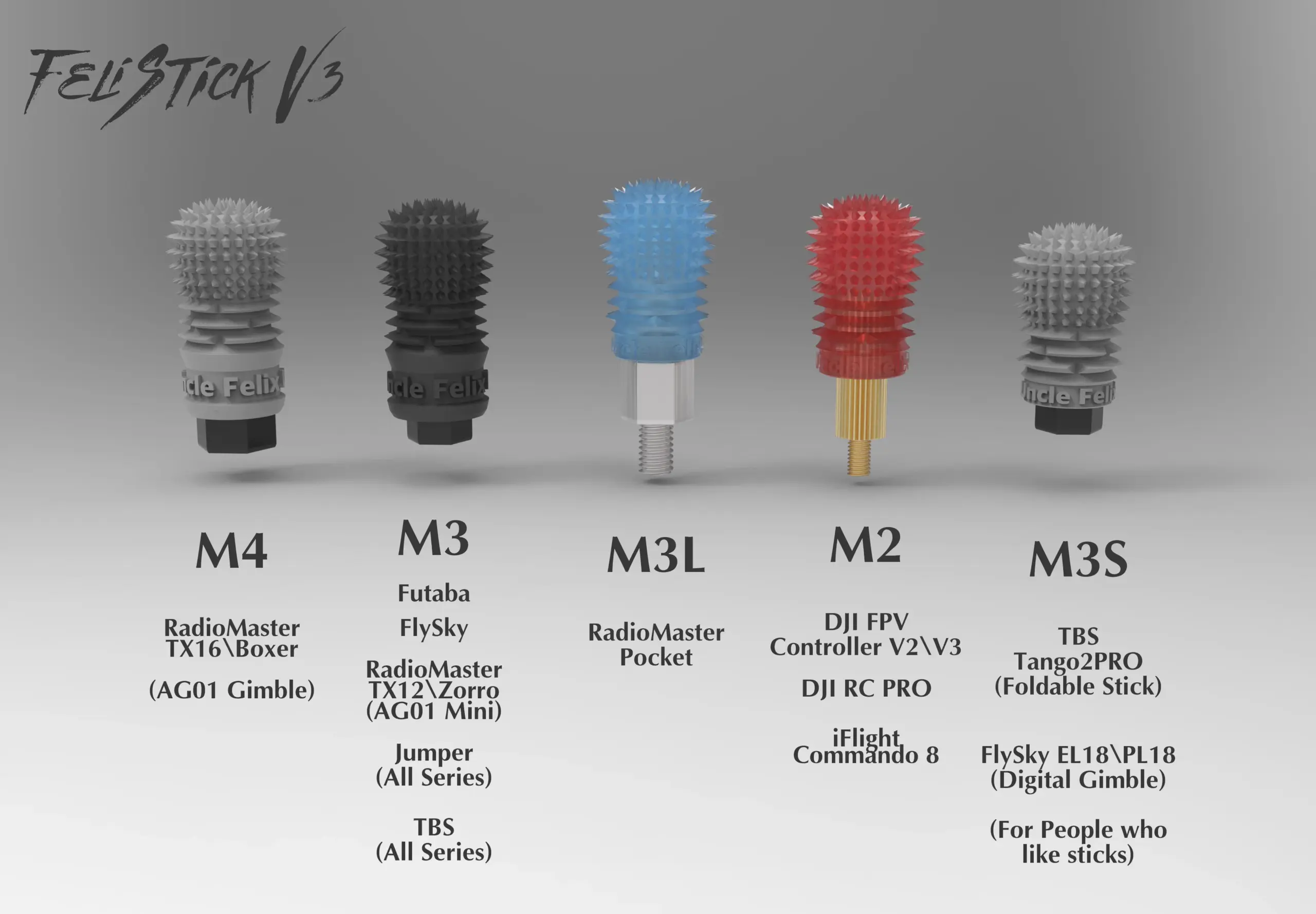 Imagine upgrading your remote control setup with these specially designed FisherStick V3 gimbal stick ends. Crafted from durable composite material, these joystick lever caps are engineered for ultimate control and comfort during intense flights or remote operations. The textured, anti-slip surface ensures your grip remains firm, reducing accidental slips and improving precision. Available in two striking color options—subtle V3 M3L Gray and bold V3 M4 Gray—you can customize your controller for both style and functionality. With a sleek conical shape, these gimbal ends are tailored for pinch grip handling, offering you a stable and confident control experience. Perfect for enthusiasts seeking reliable, high-quality replacement parts that seamlessly blend performance and aesthetics.