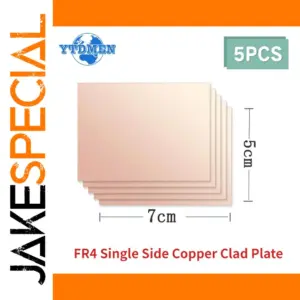 These 5-piece single-sided FR4 PCB lamination boards measure 5×7 cm with a thickness of 1.5 mm, crafted from high-quality glass fiber. They offer high mechanical and dielectric properties, excellent flatness, bending strength at high temperatures, and resistance to heat and moisture. Featuring a standard copper layer, hole diameter, line spacing, and line width, these PCBs are ideal for prototyping and circuit development. Their smooth, matte, beige surface with clean, straight edges exudes a professional, minimalist aesthetic, making them suitable for hobbyists, engineers, and technicians looking for reliable, versatile circuit boards for their projects.