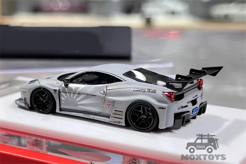 Imagine showcasing this exquisite 1:64 scale Flame LB-Silhouette Works 458 GT model car in your collection. Drenched in a stunning Combat Grey color, this high-performance beauty boasts a sleek design with sharp angles and curves, embodying the essence of sports cars. The prominent black rear wing and striking multi-spoke wheels underline its aggressive character, while intricate details like mesh-style grilles and unique light shapes enhance its appeal. Comfortably sized at approximately 7 cm, each model rests on a clear display base, accentuating its collector's status. Don't miss your chance to own a piece of art – limited to just 199 units, this model is brand new and comes beautifully packaged!