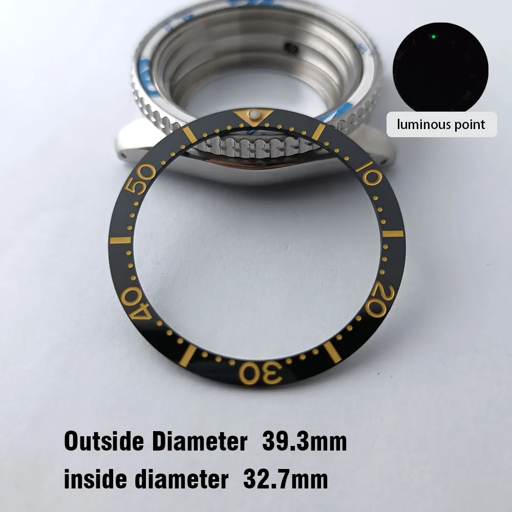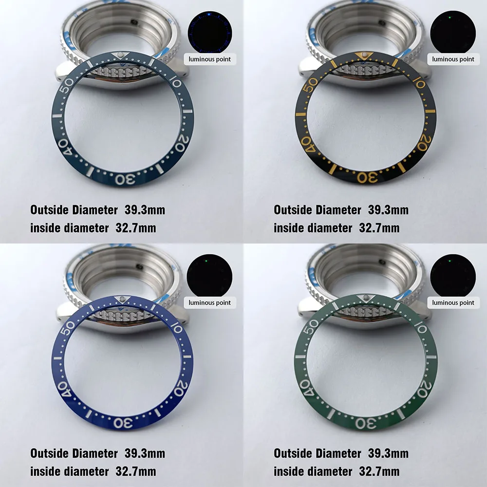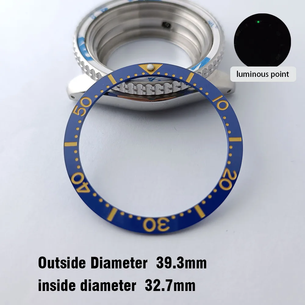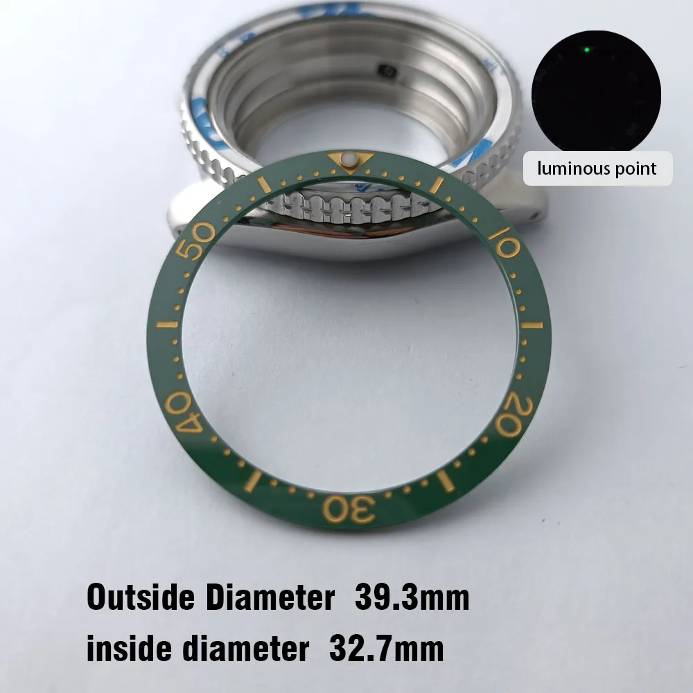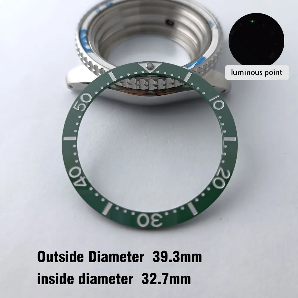 Enhance your diving watch with these high-quality flat ceramic bezel inserts, each measuring 39.3mm outside diameter and 32.7mm inner diameter. Crafted from scratch-resistant ceramic, they offer durability and a sleek, modern look. Available in stylish color options including dark blue, black, blue, and green, these bezels feature easy installation with included double-sided adhesive tape. Designed for seamless replacement, they are compatible with various watch models, ensuring a perfect fit for your preferred timepiece. Their flat, non-tilted profile provides a refined aesthetic, adding both functionality and sophistication to your diving watch.